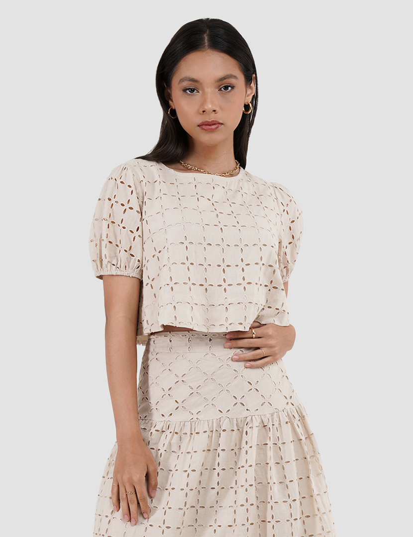 A One set pieces, essential in any wardrobe for its versatility and ease. Natural color and unique fabric for the season. Combine with a midi skirt and a straw hat.