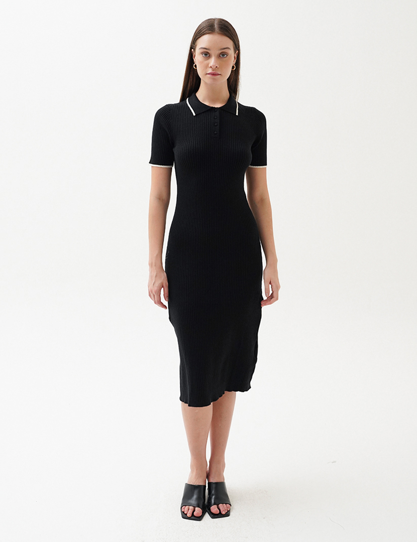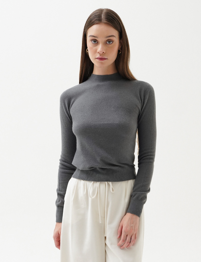Shirt Collar Straight Knit Cardigan Dark Grey