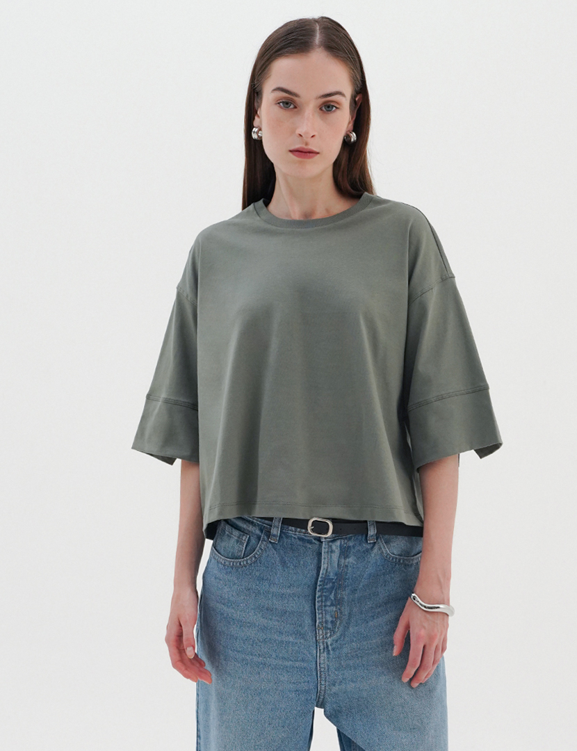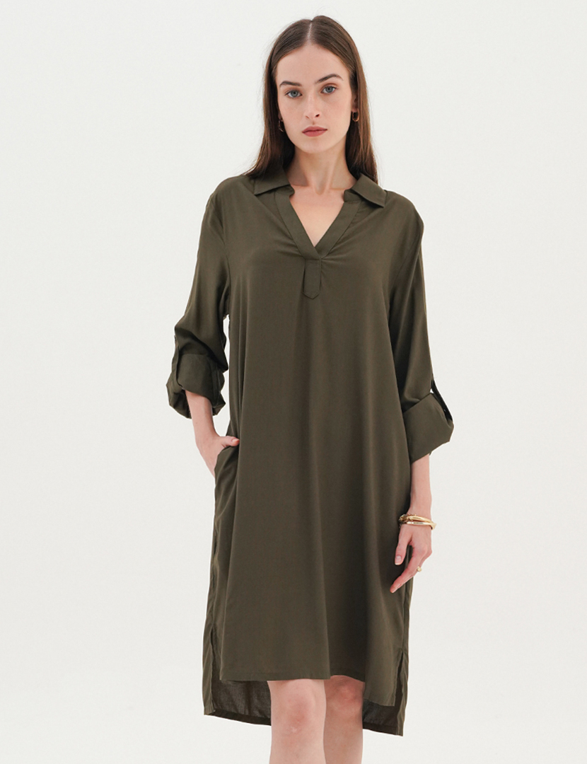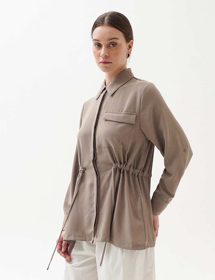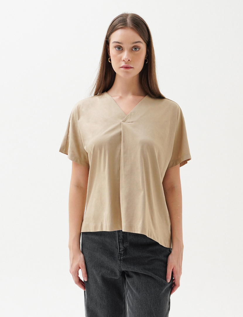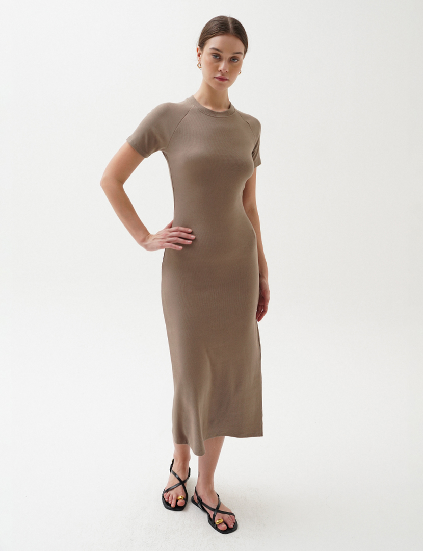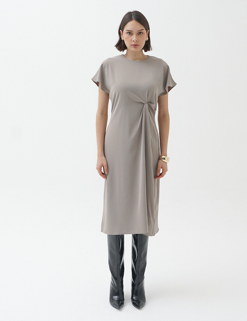 Fall Collection Cotton Pleated Midi Skirt Taupe