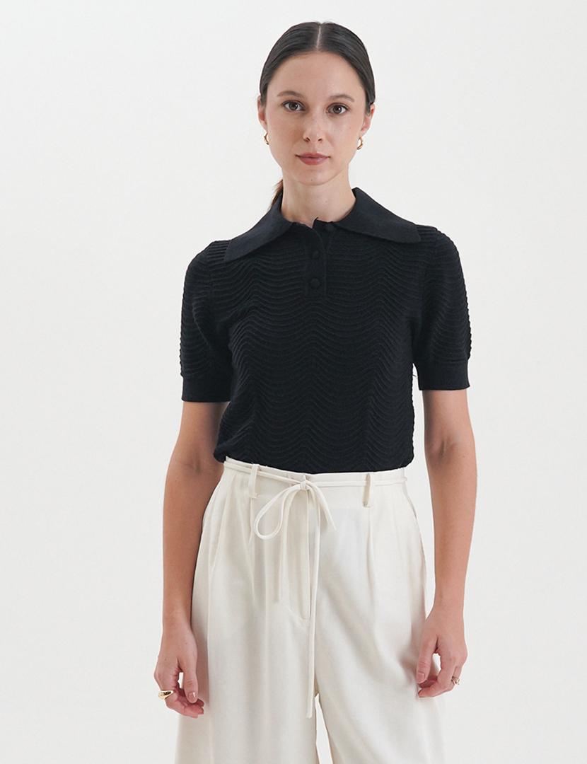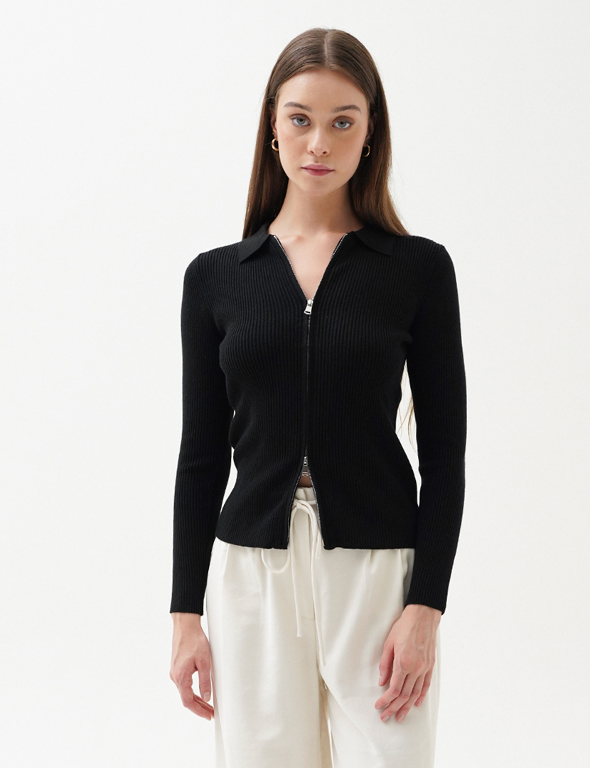 Fall Collection Cable Knit Crewneck Cardigan Black