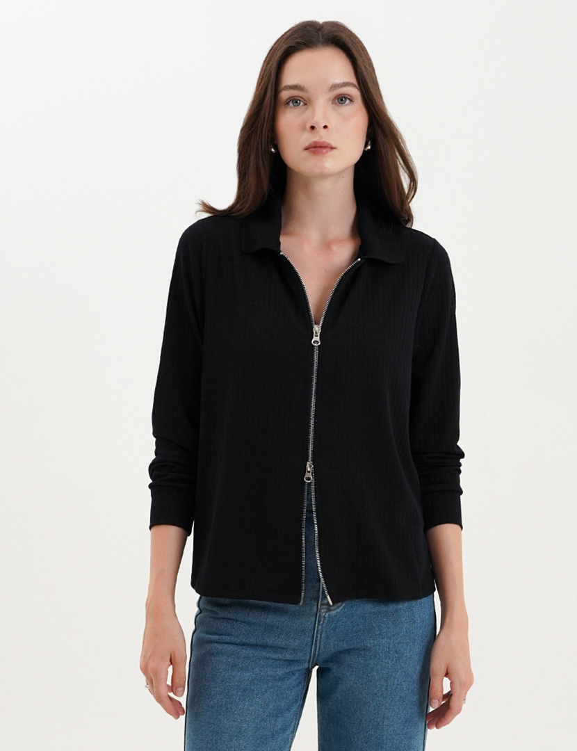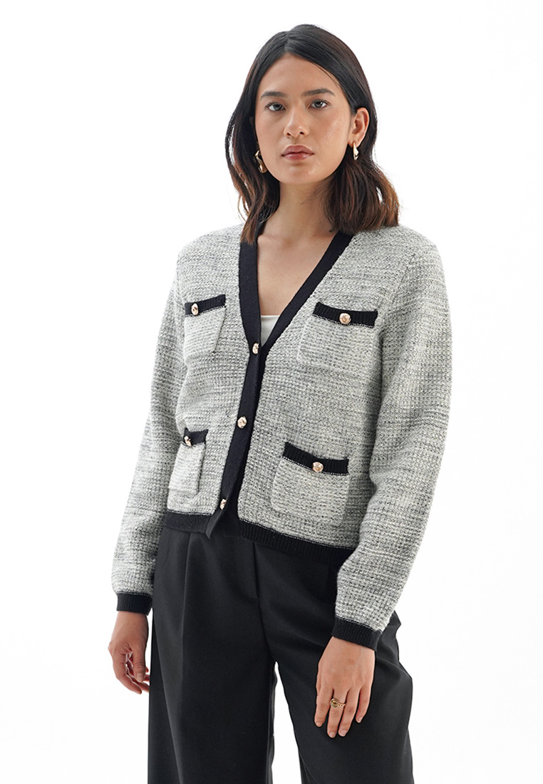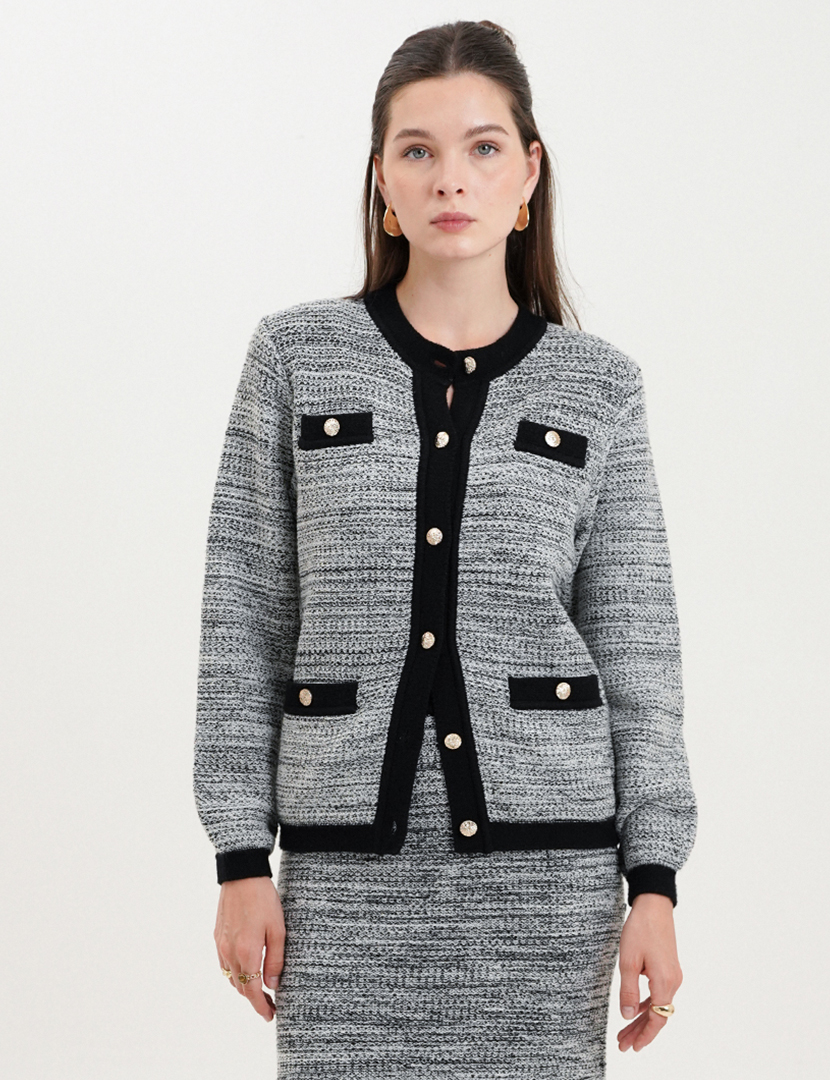 Fall Collection Tweed Pattern Double Pocket Cardigan Black