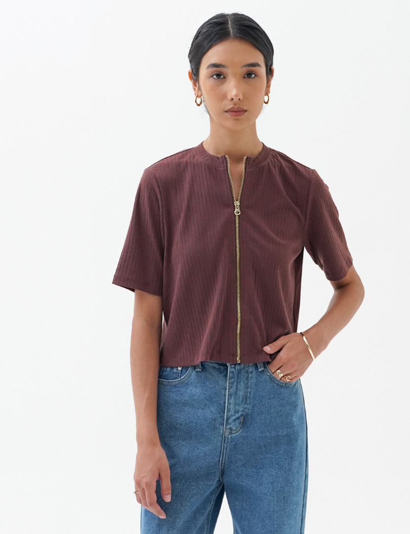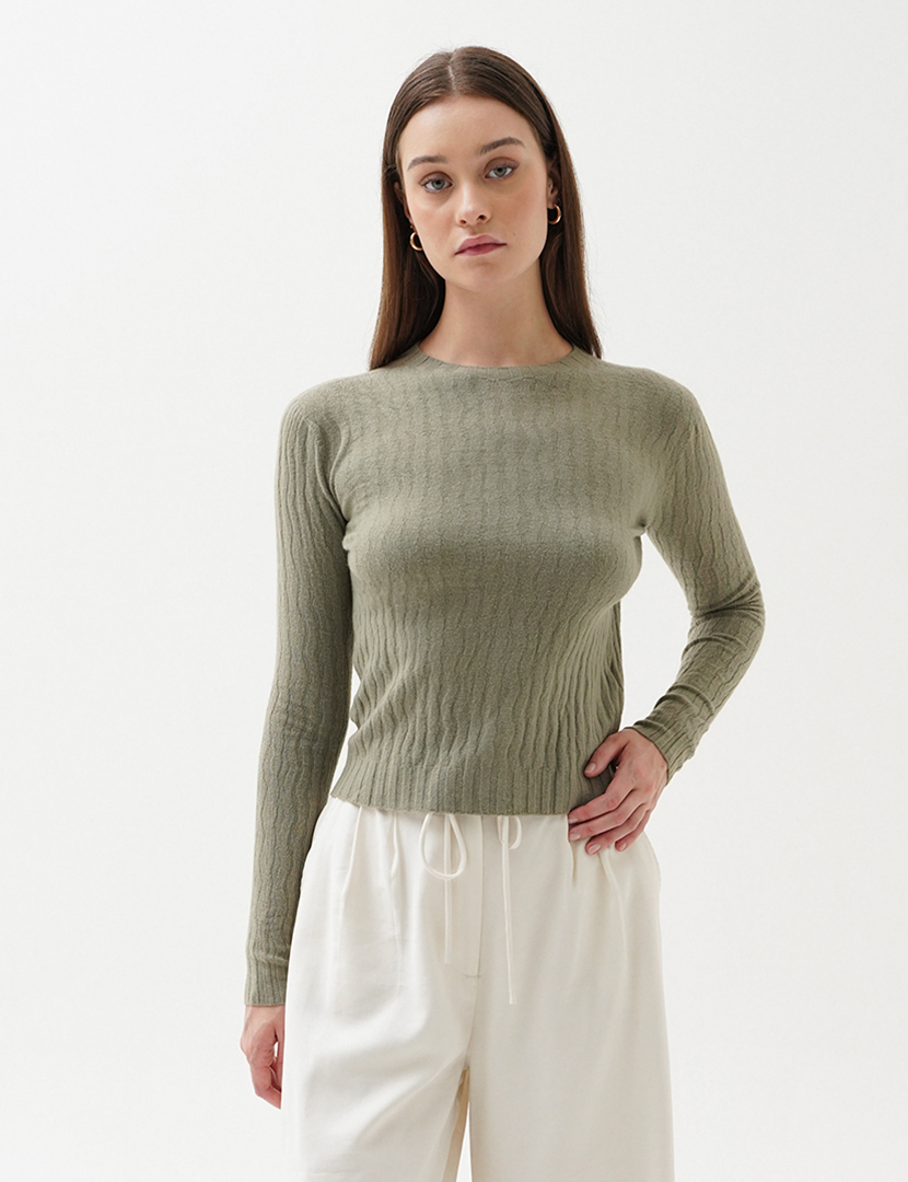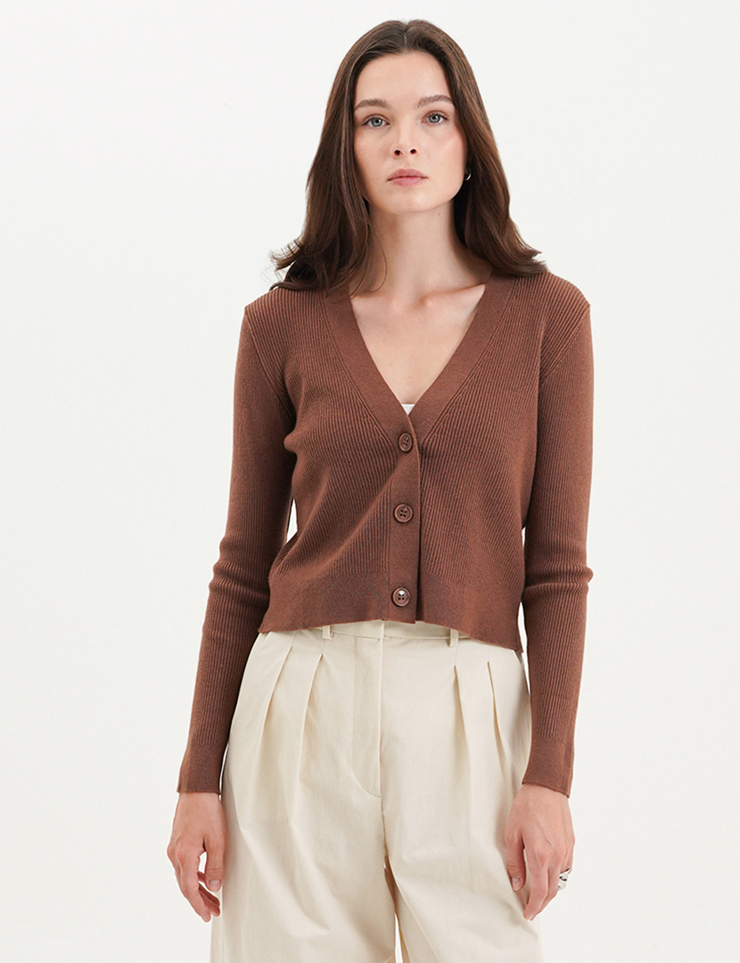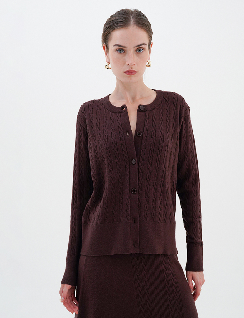 Fall Collection Cable Knit Crewneck Cardigan Dark Brown