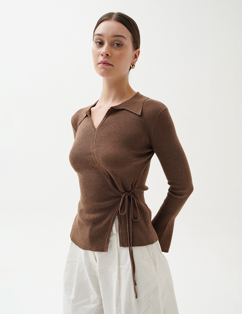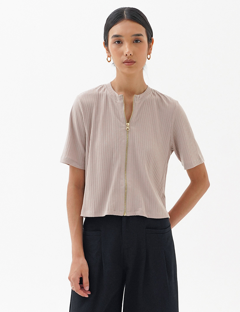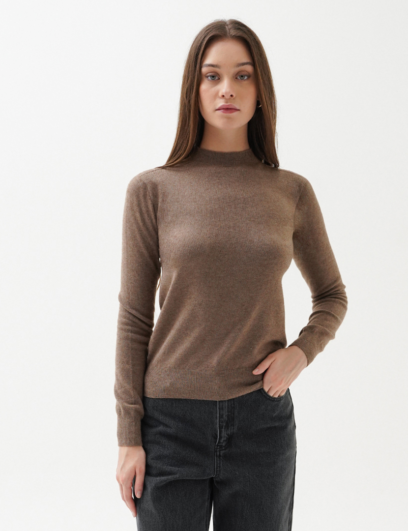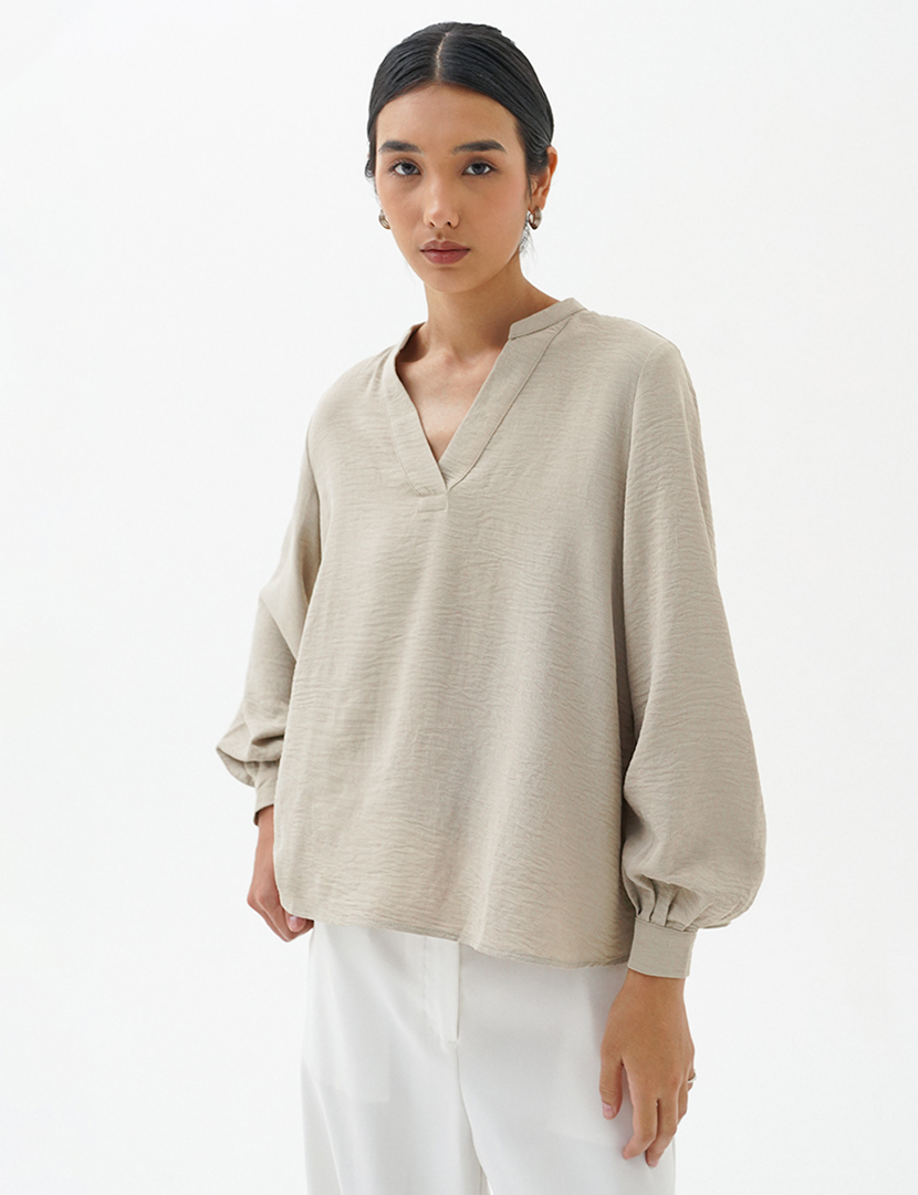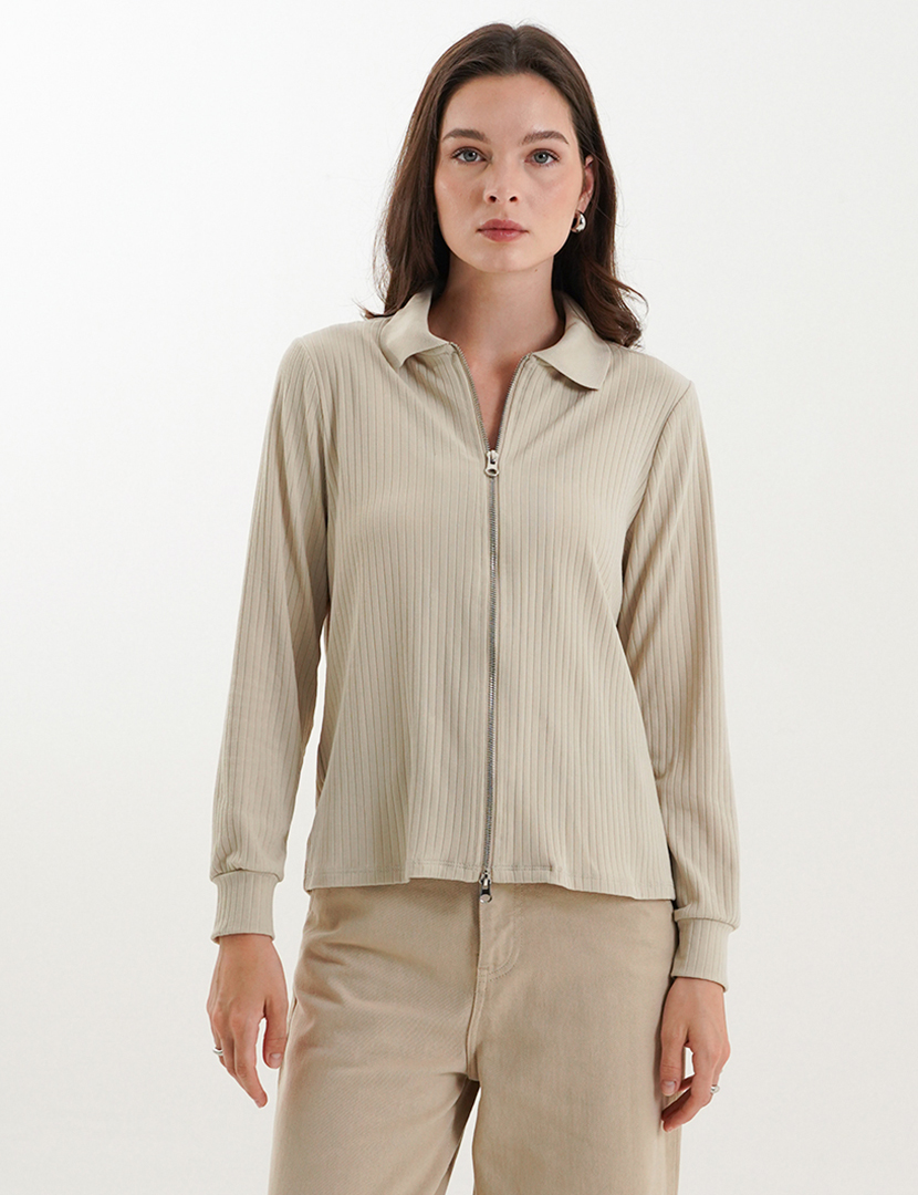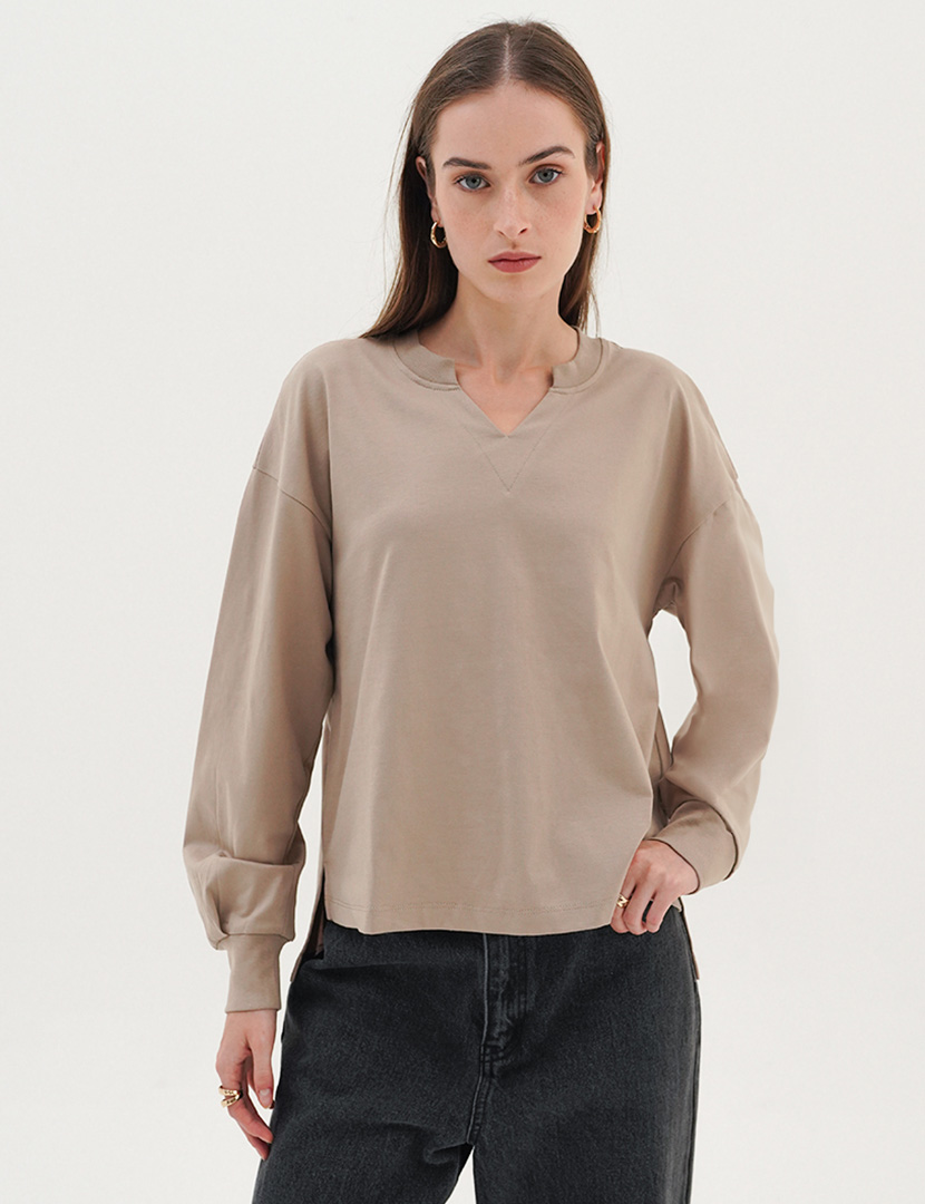 Plain Fine Knit Sweatshirt With Buttons Taupe