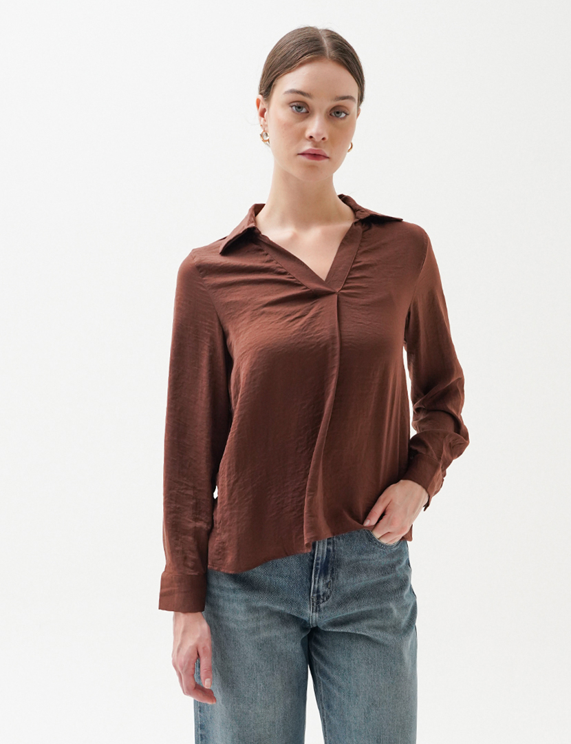Oxford Shirt Women's Long Sleeve Shirt Brown