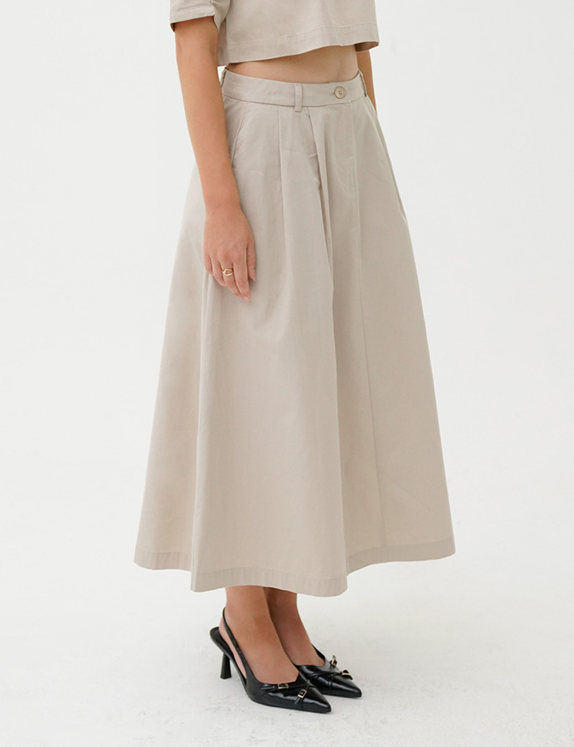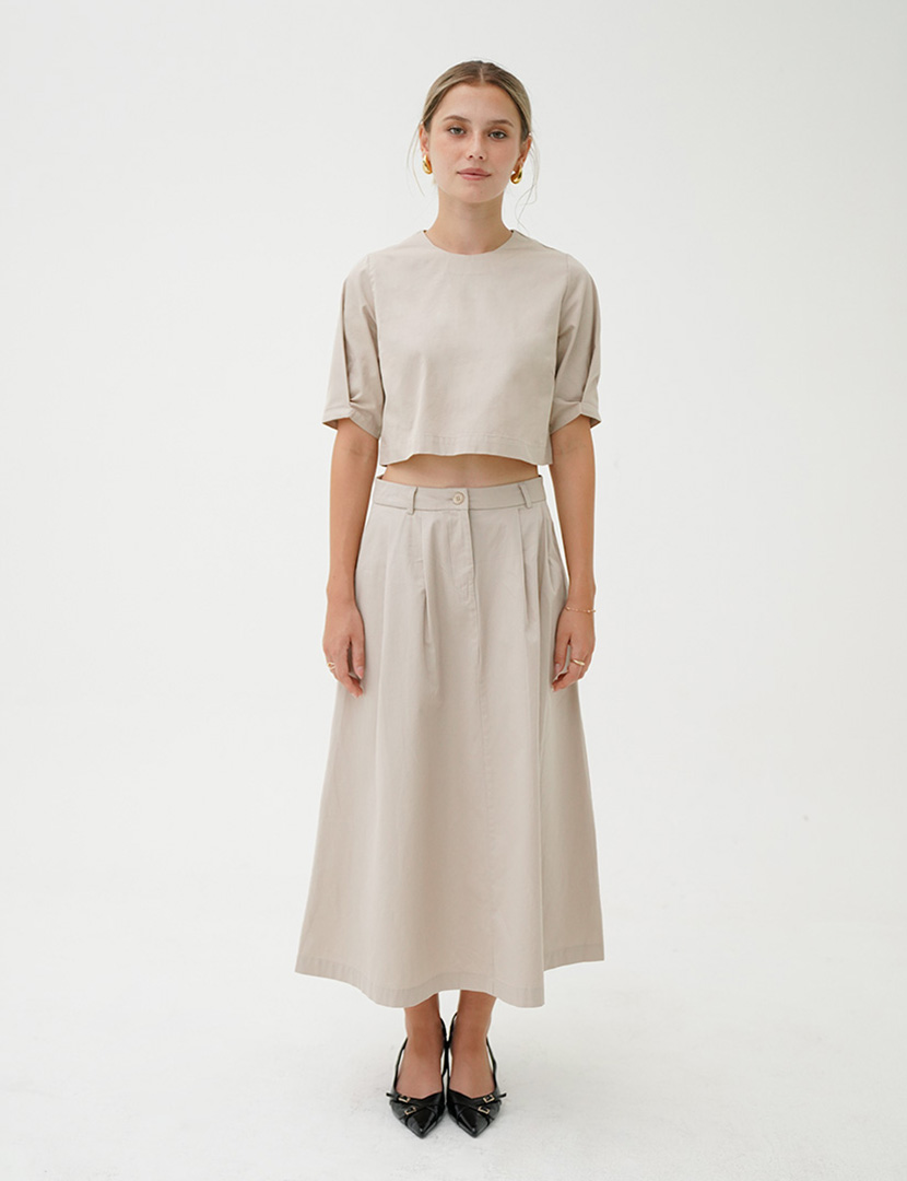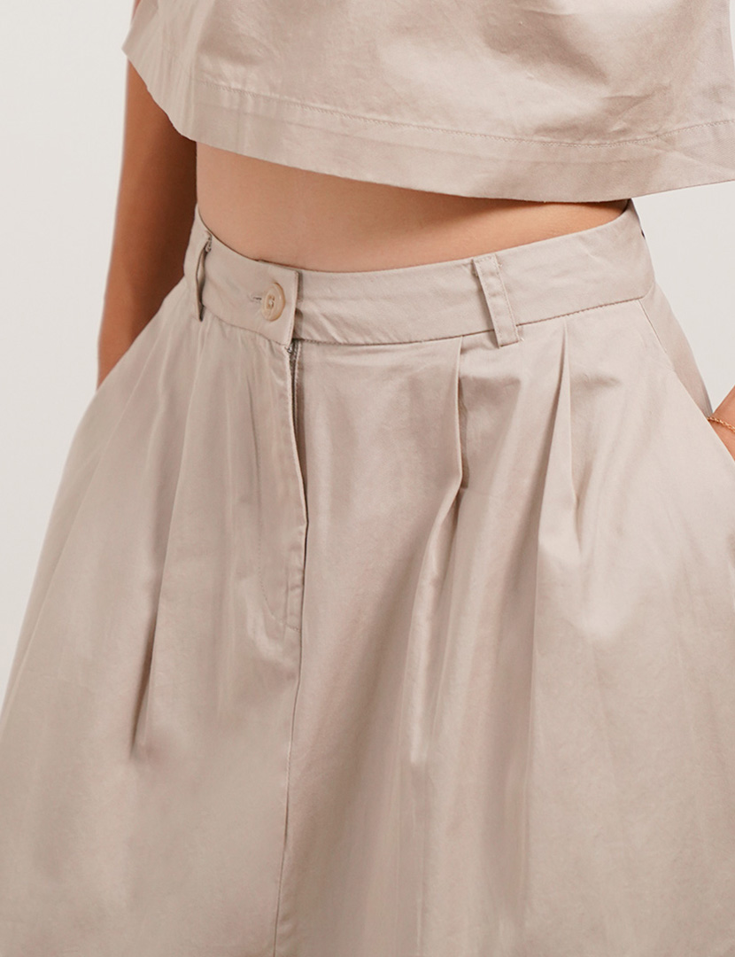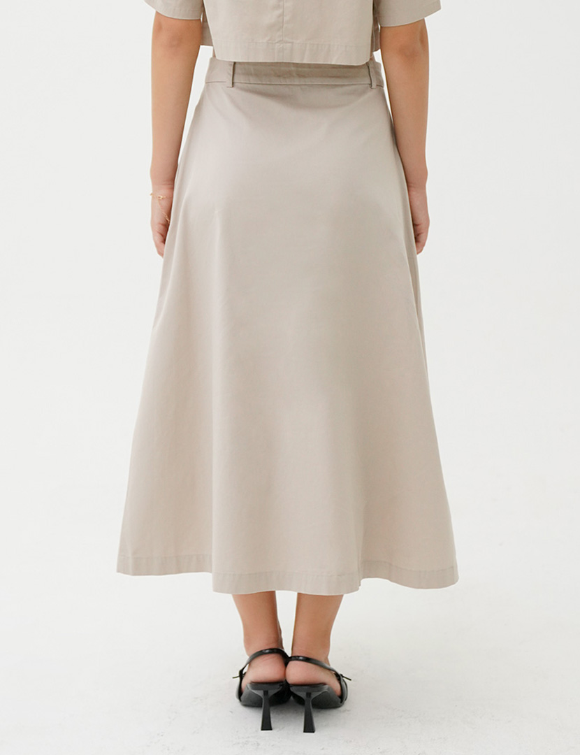 High-waist skirt made of cotton, a flared hem and an invisible side zip fastening.