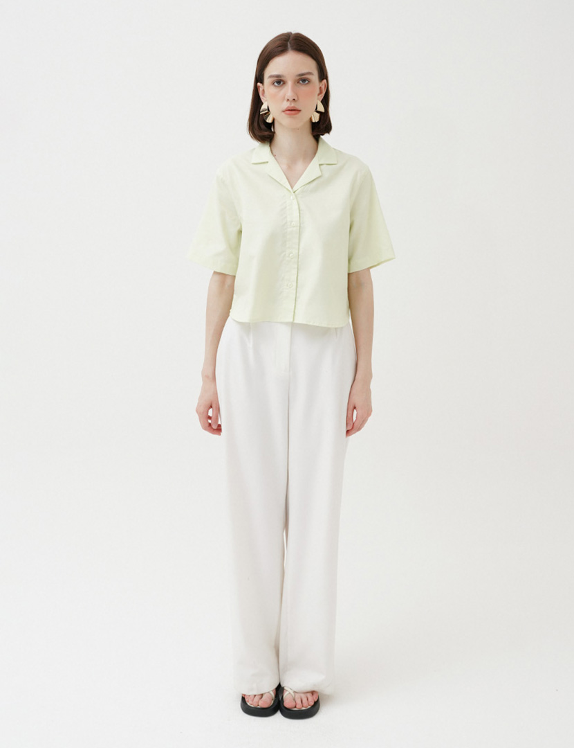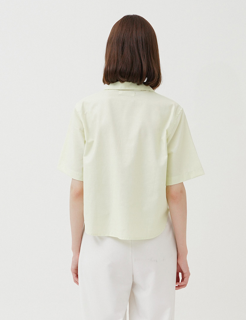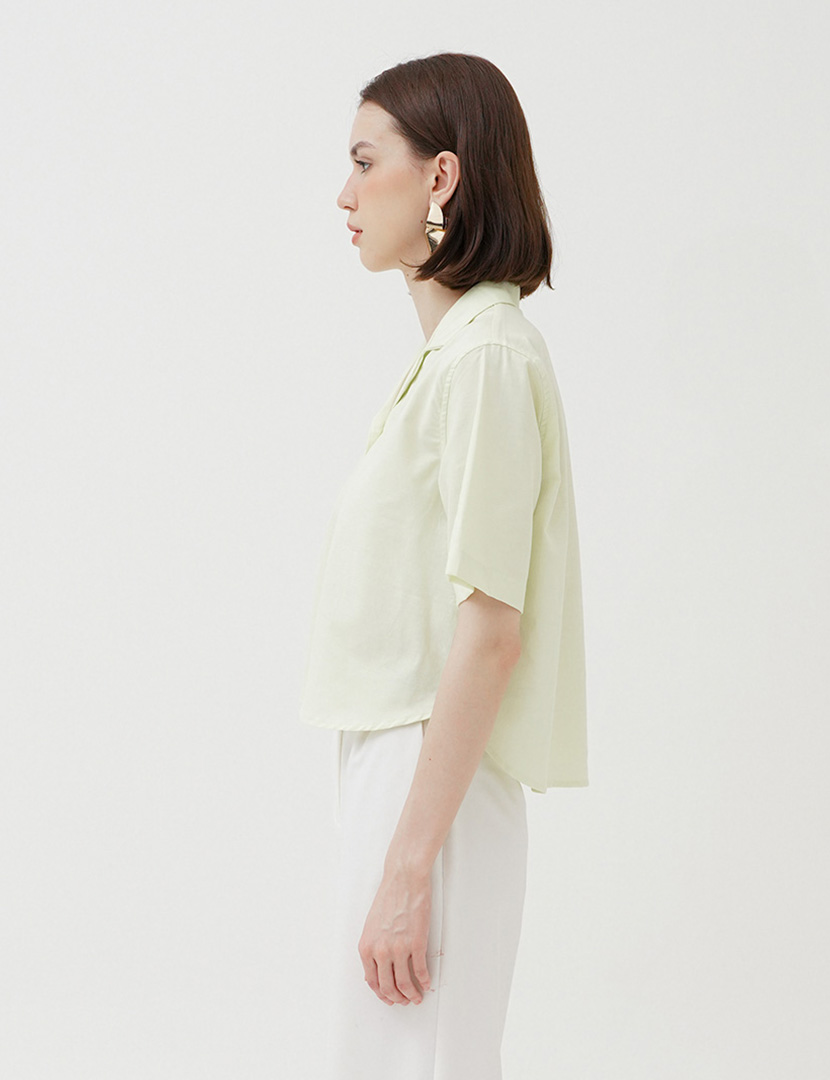 Basic shirt with short sleeves. Resort collar detail with front button opening