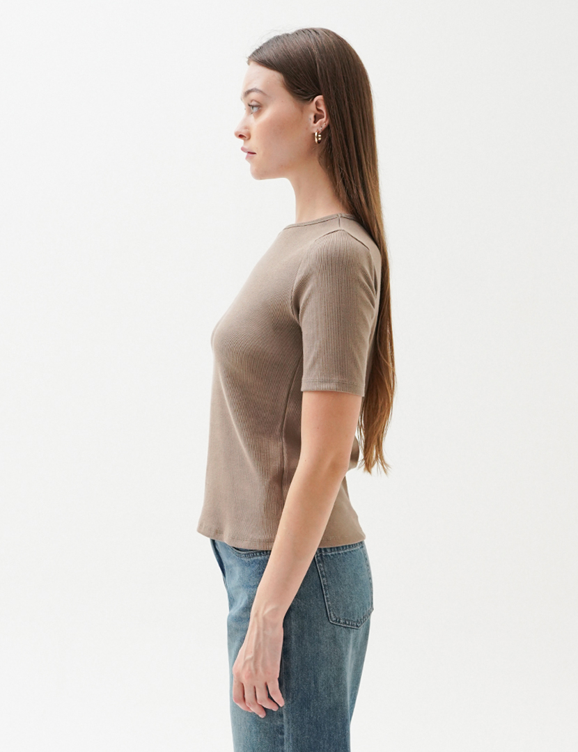 T-shirt made from ribbed fabric with a boat neck and
