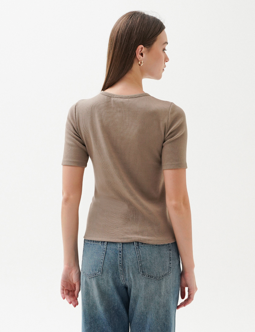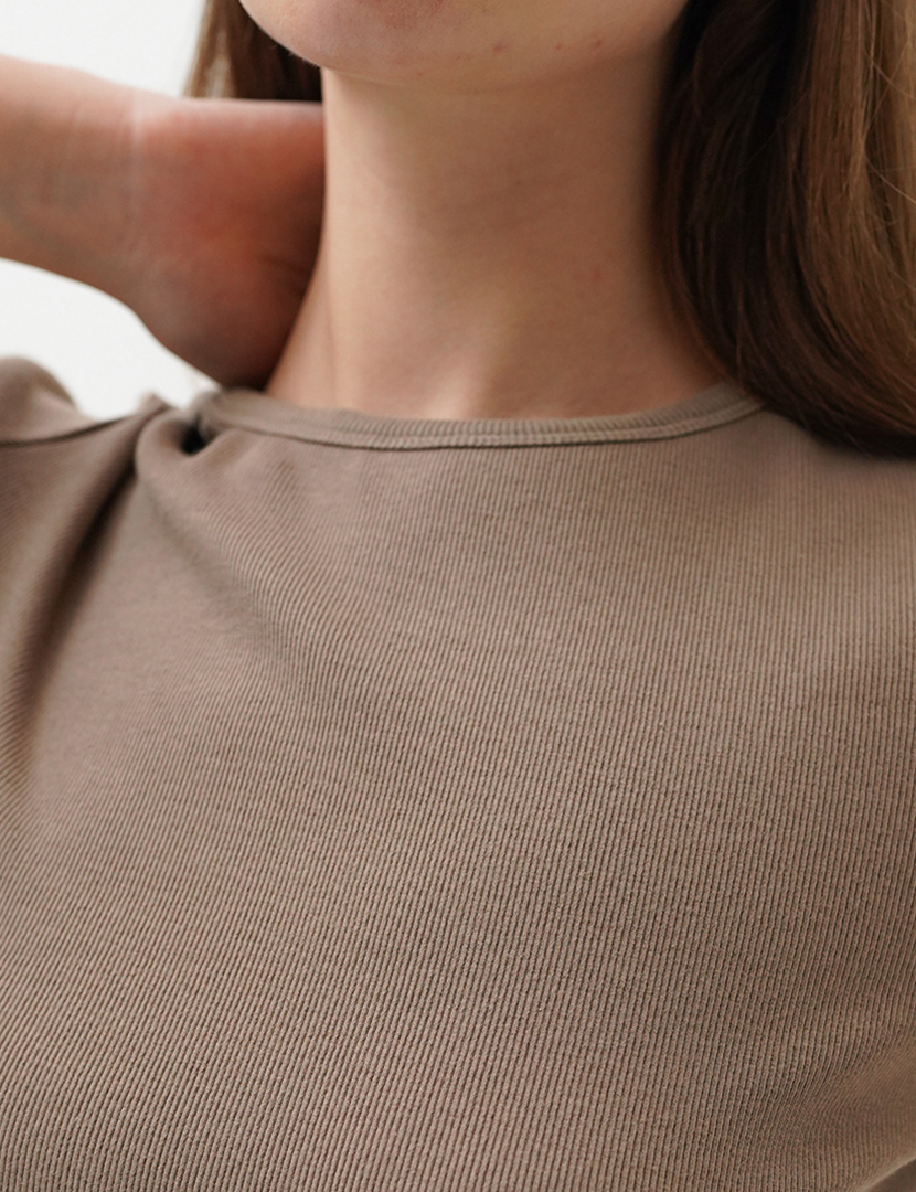 Fine Knit Top With Gathered Seam Taupe