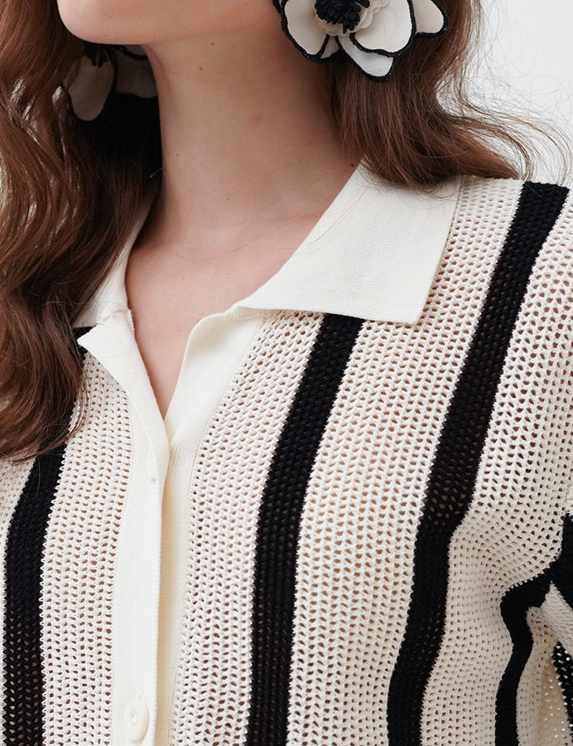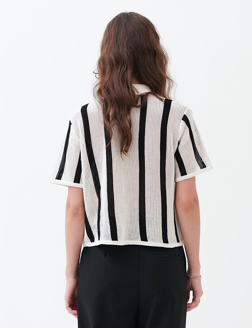 Cotton Crochet Shirt In Stripe Black