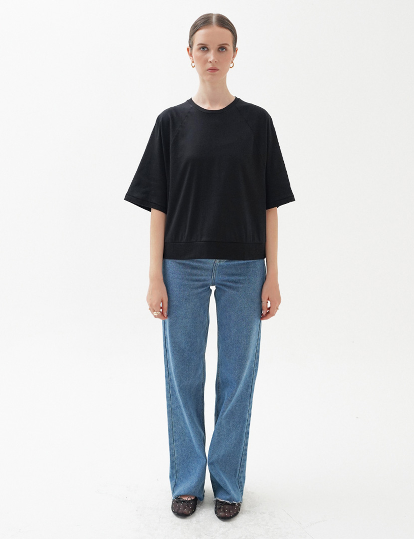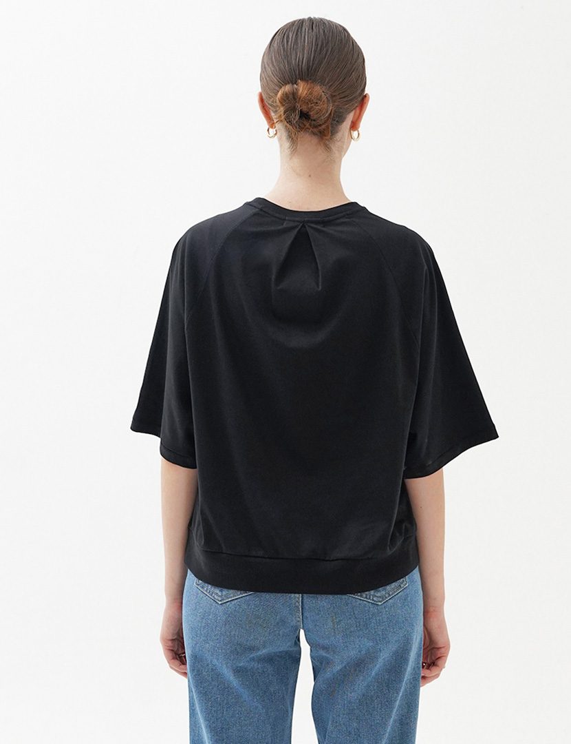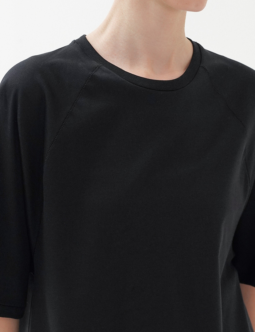 T-shirt made of a soft and flexible elastic fabric, crew-neck and raglan short sleeve.