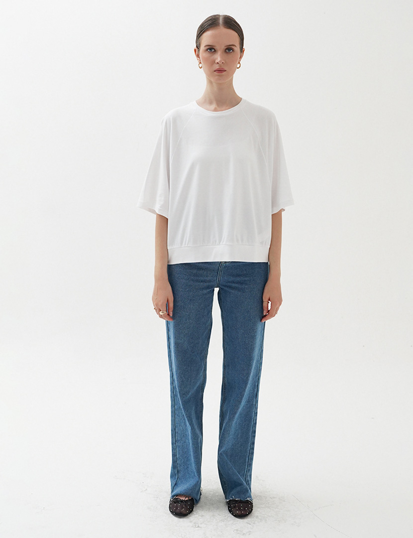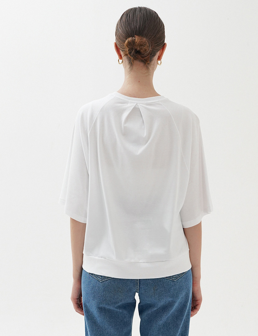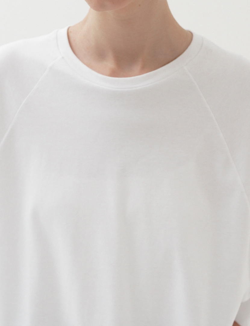 T-shirt made of a soft and flexible elastic fabric, crew-neck and raglan short sleeve.