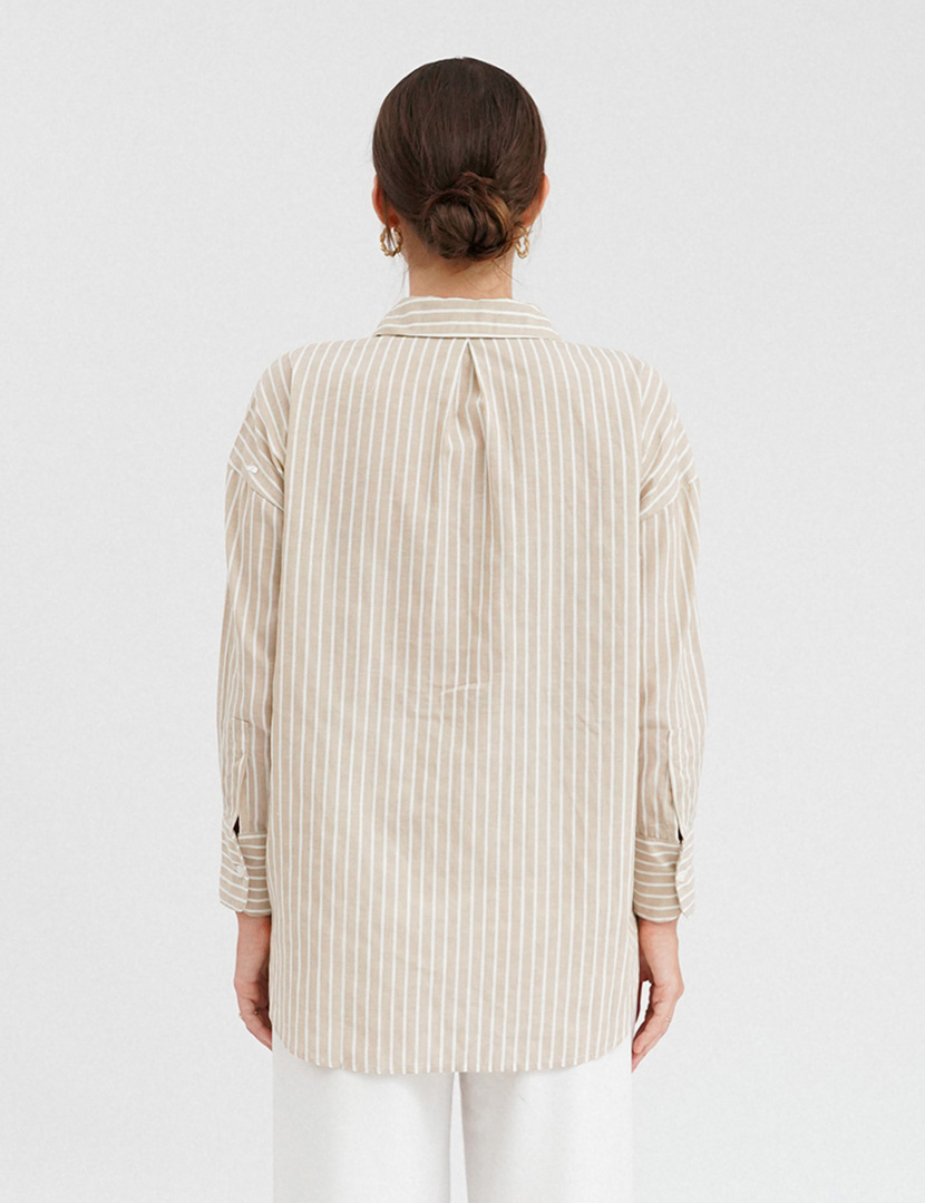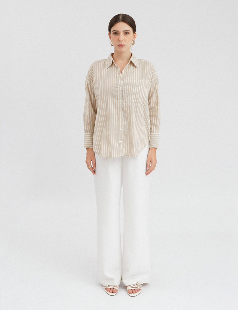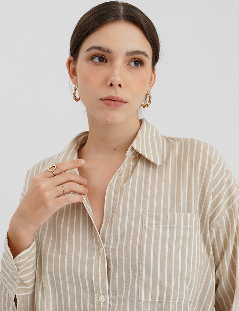Collared shirt made of cotton. Featuring long sleeves, a front patch pocket and button-up front.