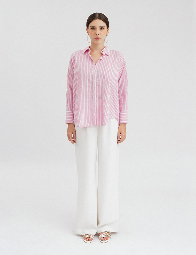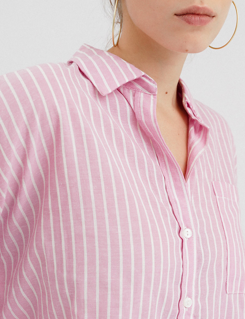 Collared shirt made of cotton. Featuring long sleeves, a front patch pocket and button-up front.
