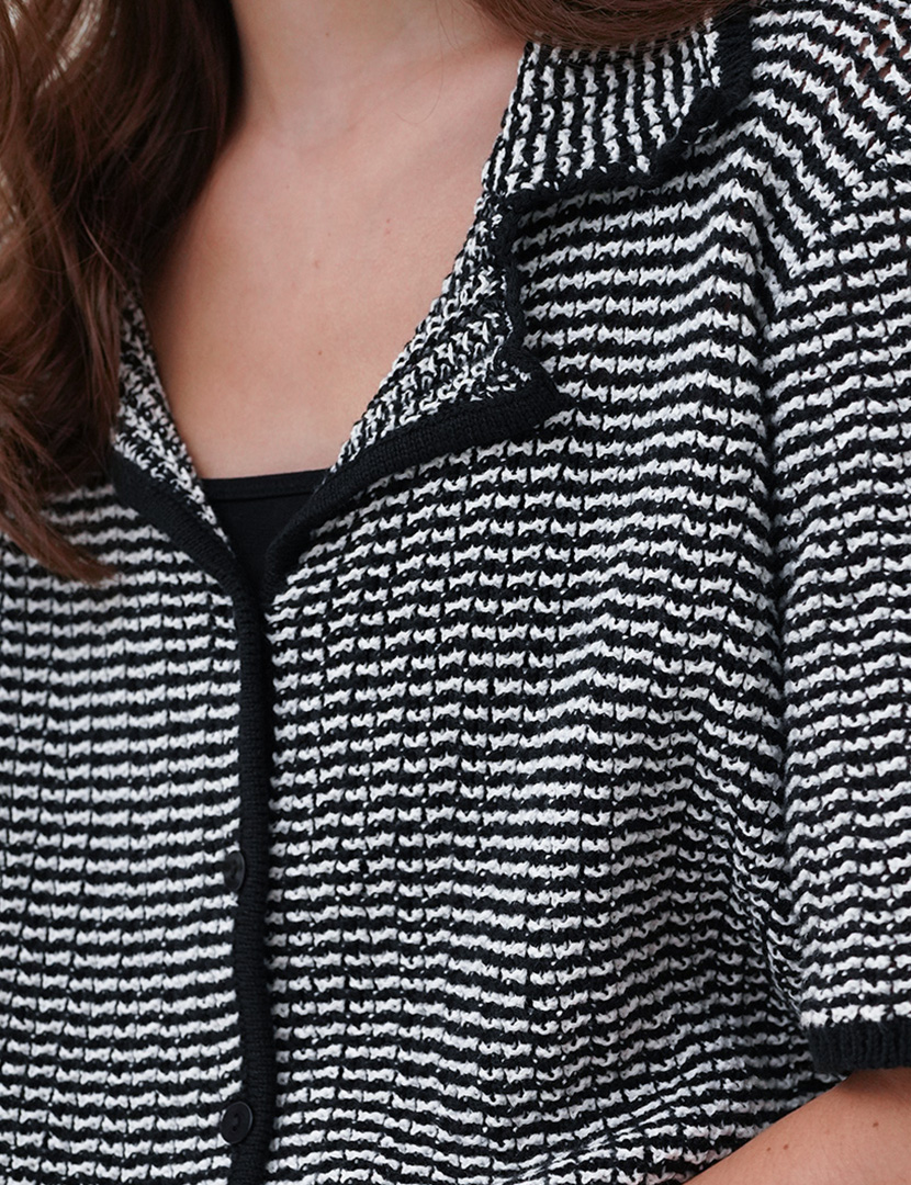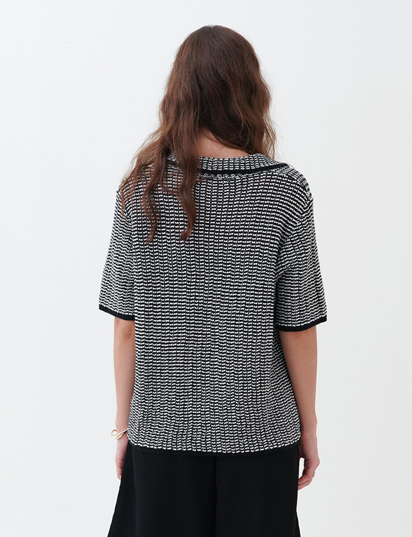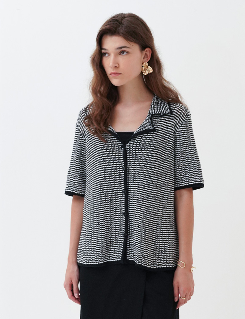 Relaxed fit shirt made of openwork fabric. Resort collar, short sleeves,and button-up front.