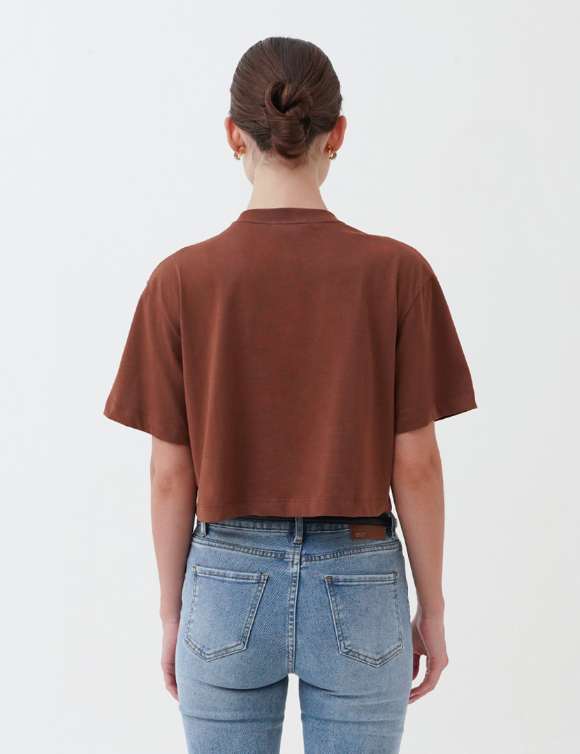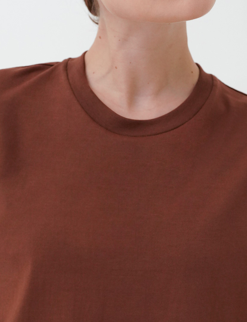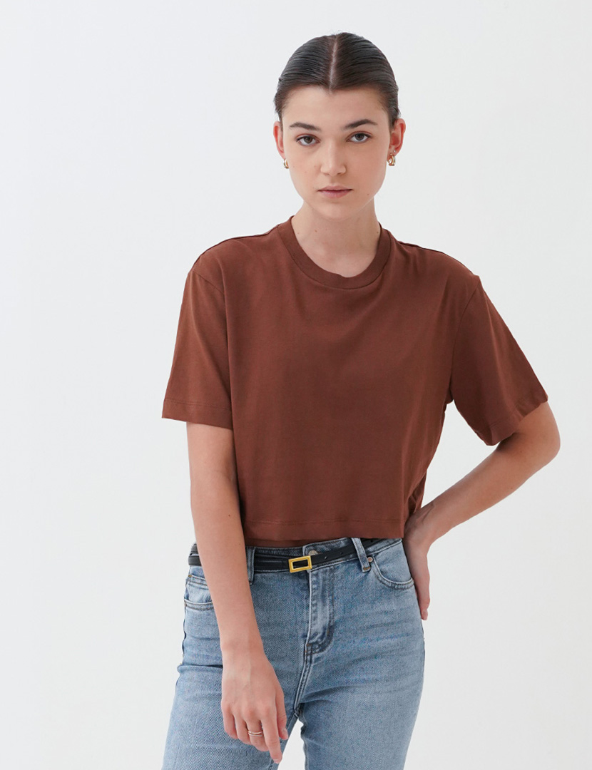 Round neck top with short sleeves.