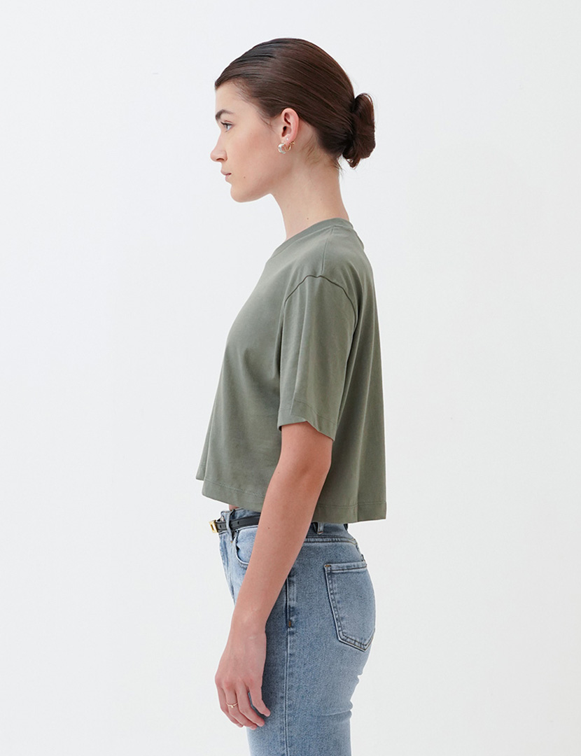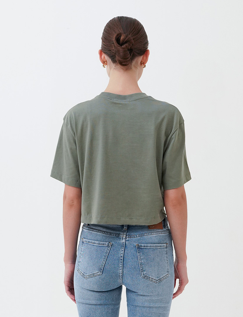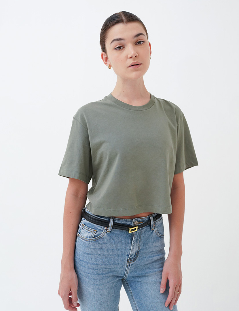 Round neck top with short sleeves.
