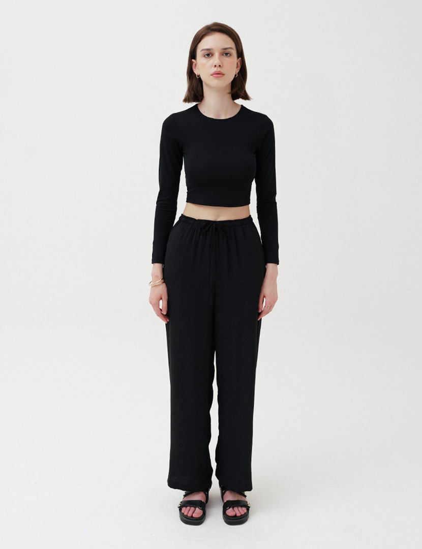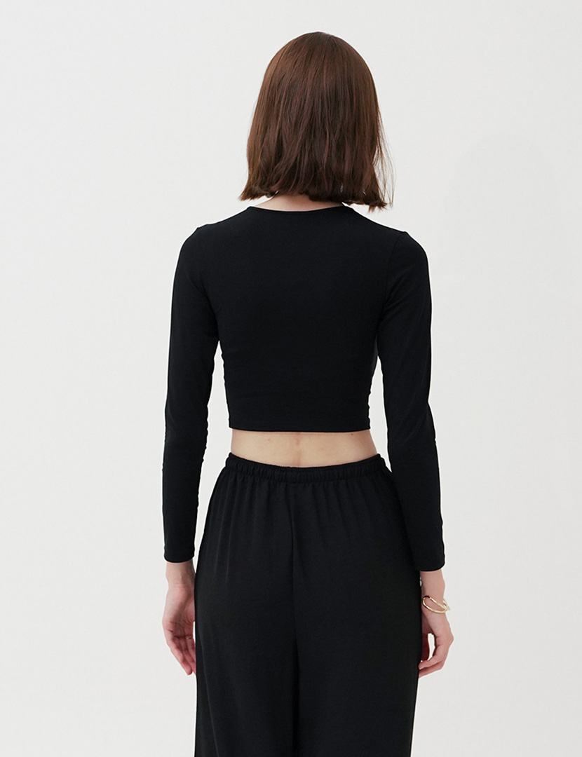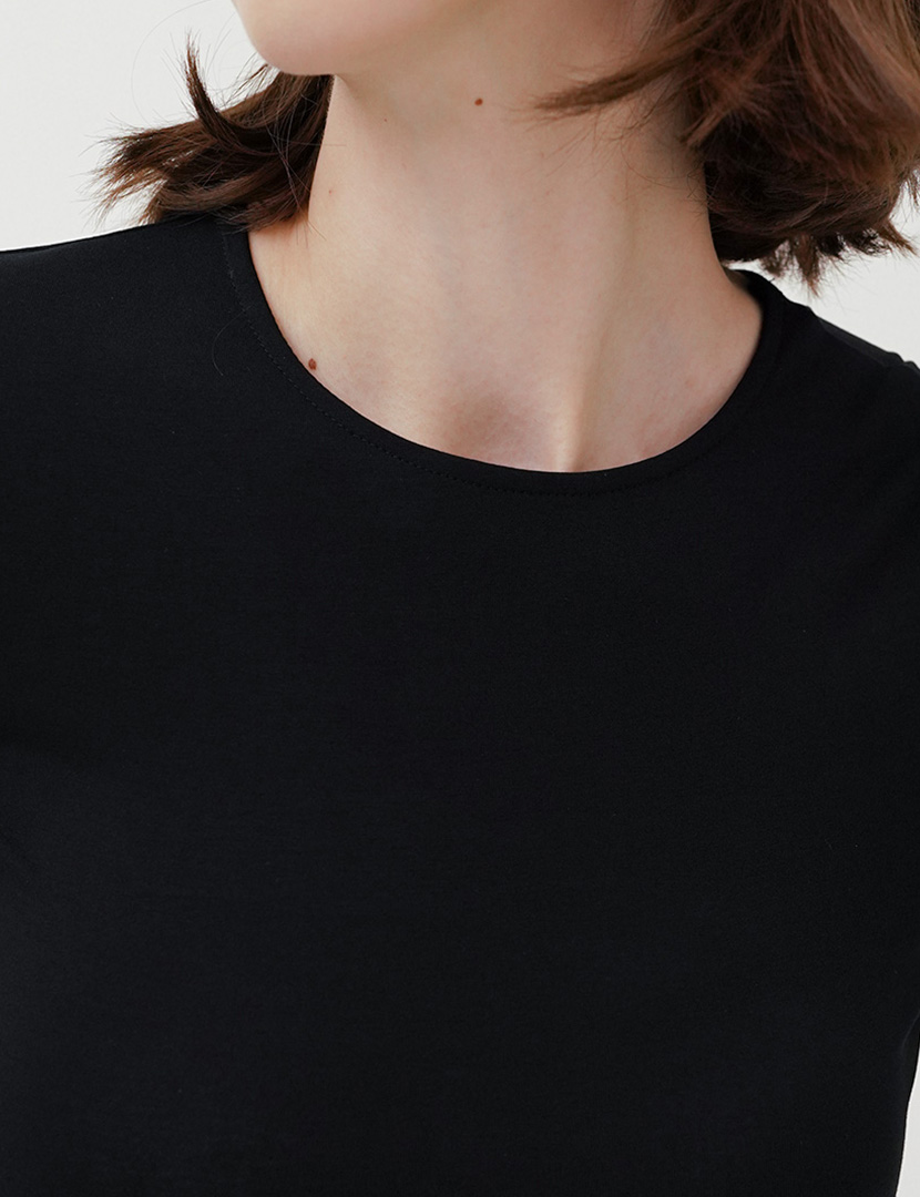 Round neck long sleeve t-shirt made of a jersey blend fabric.