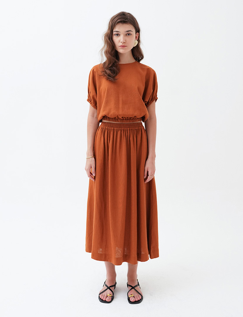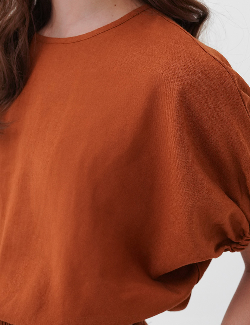 Cropped Linen Top Orange Brick