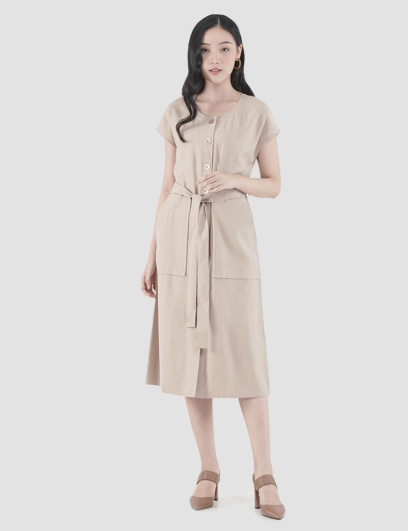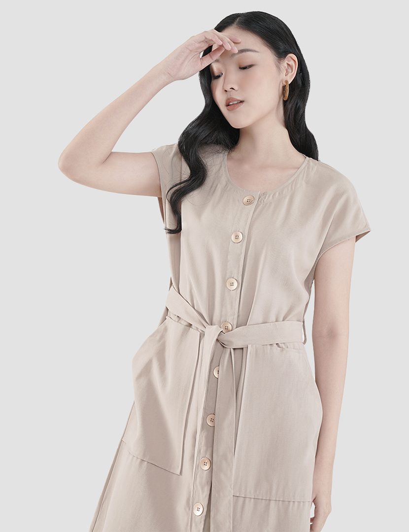 Maxi dress button variations two front pockets short sleeve strap.