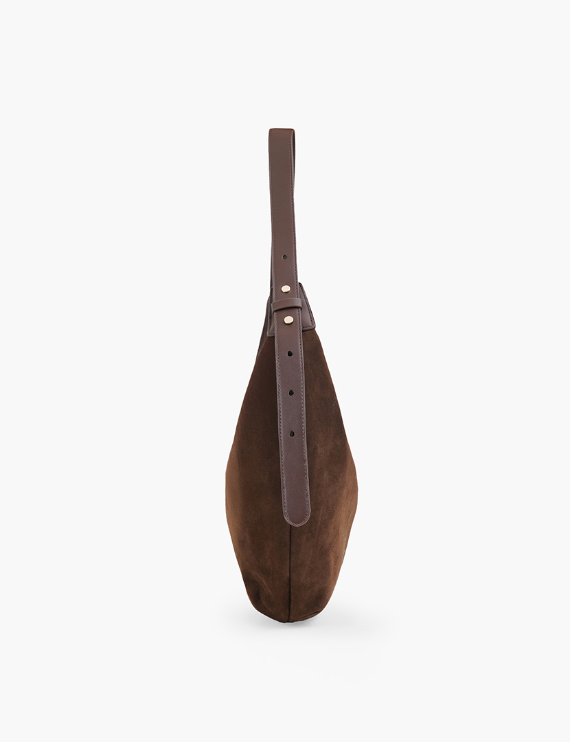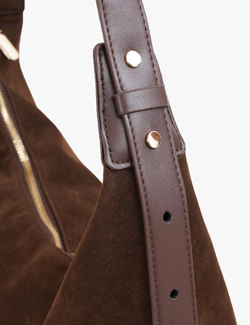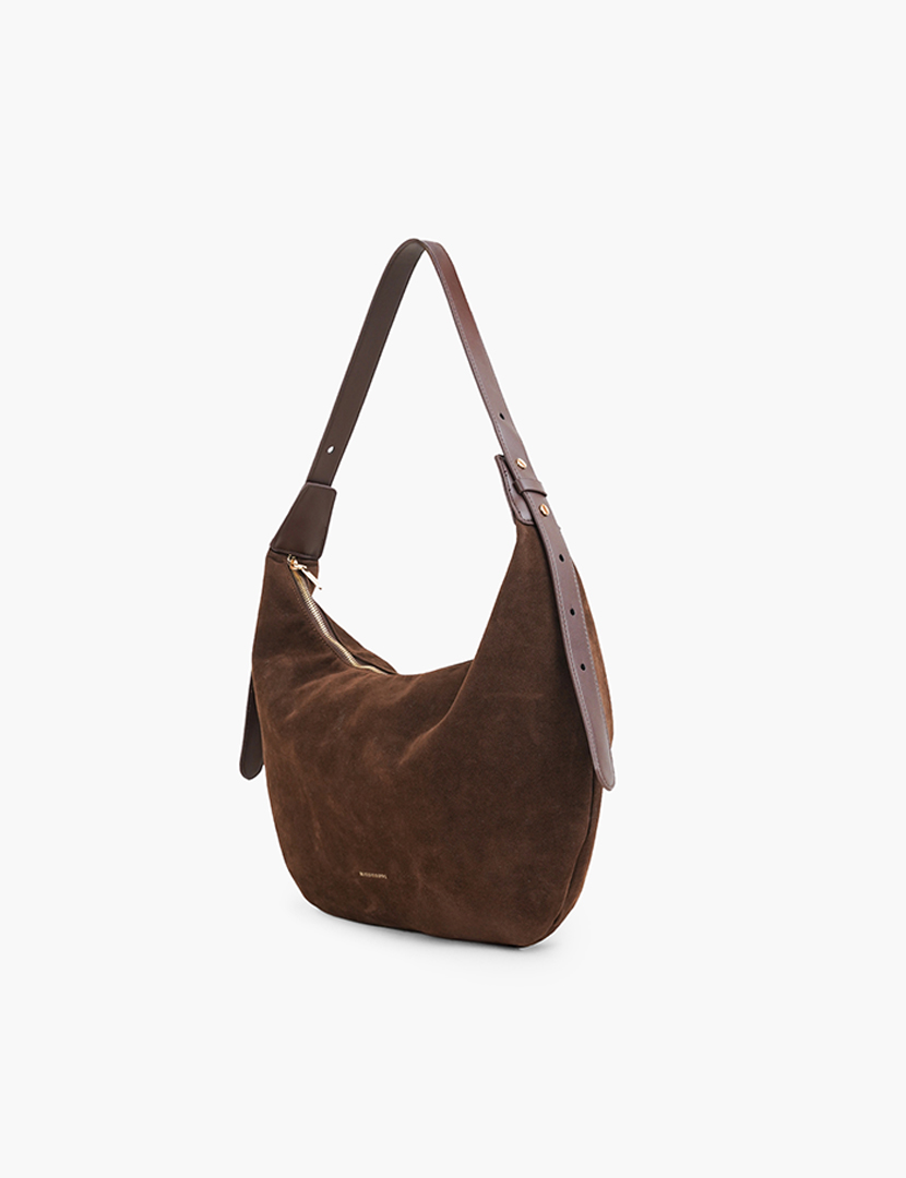 A Half Moon bag. Adjustable shoulder strap. Inside zip pocket. Zipped fastening.