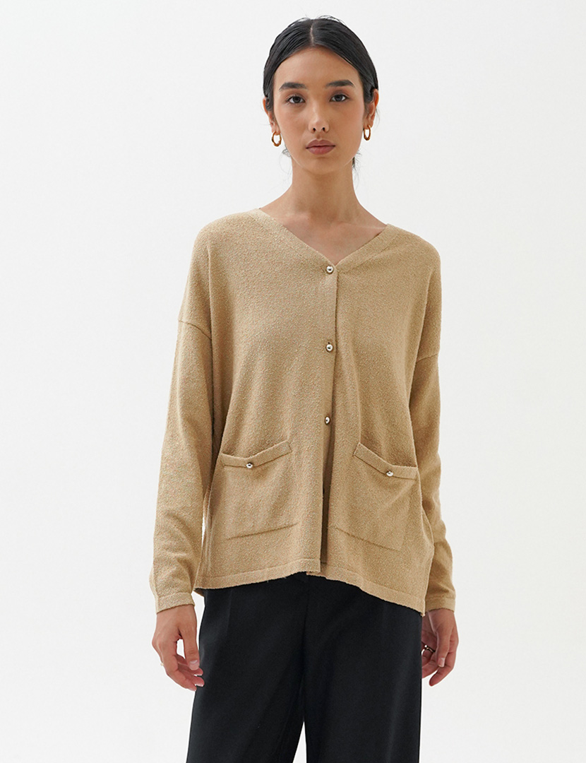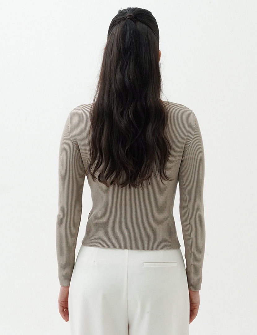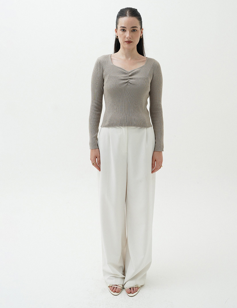 Slim fit knit top with long sleeve and gathered detail in the front.