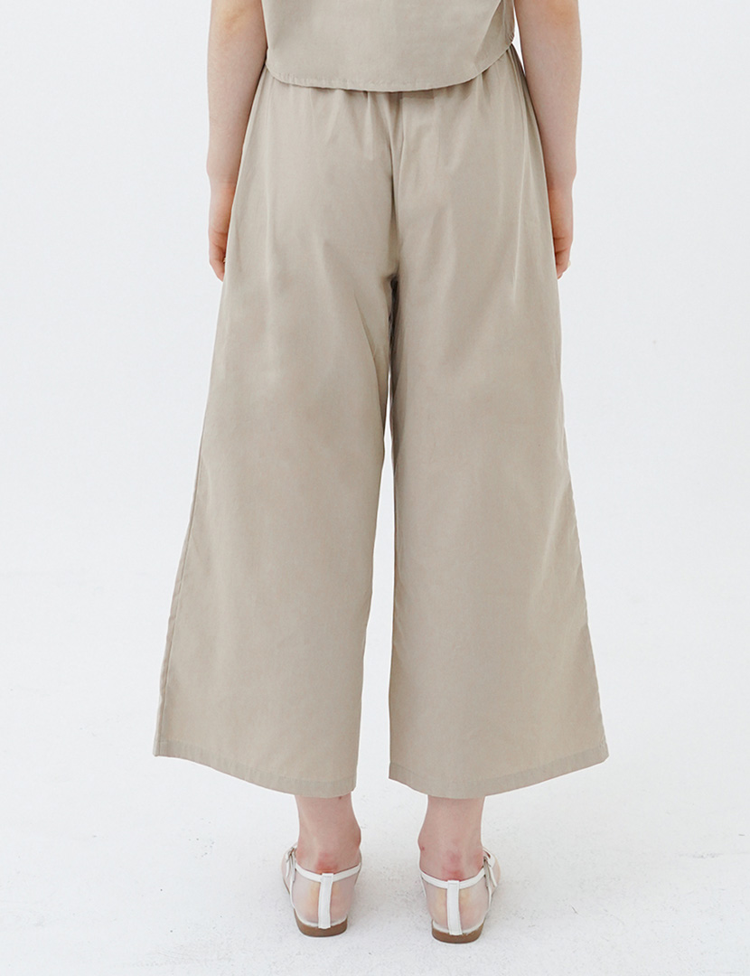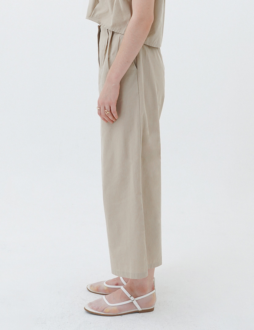 High-rise trousers featuring an elastic waist, side pockets and pleats on the front, straight-leg design, front zip fly.
