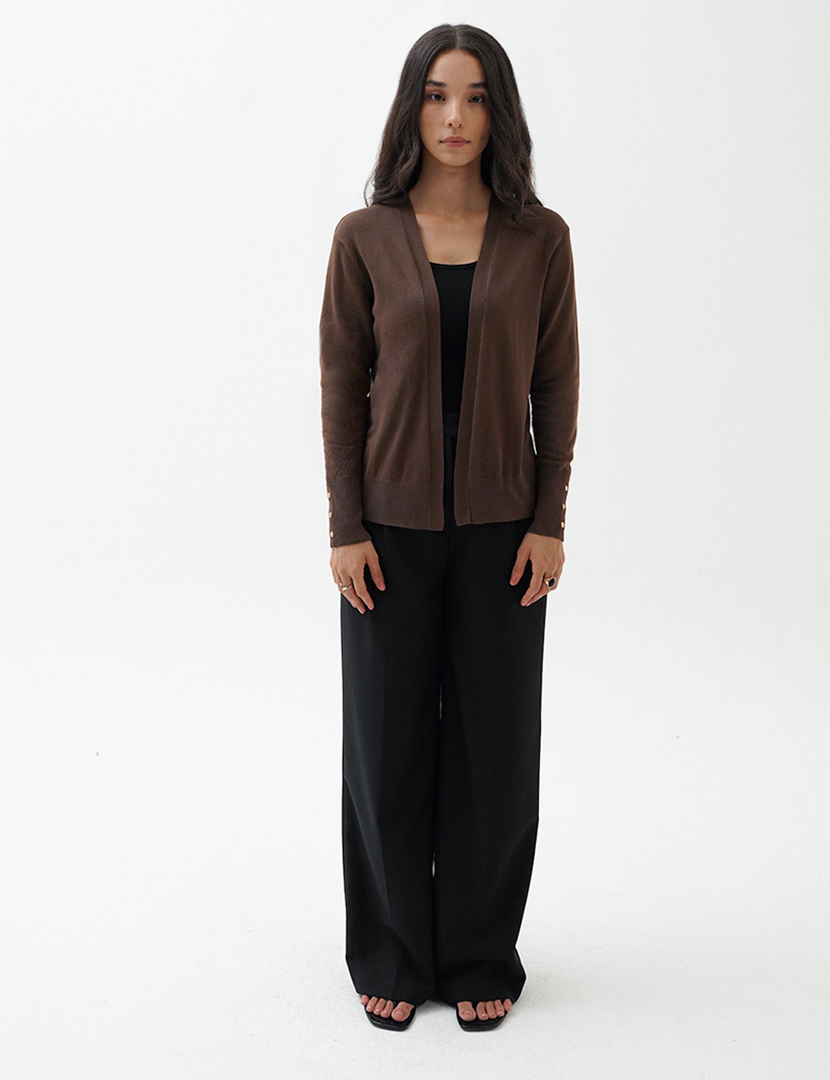 Cardigan with v-neckline, long sleeves and button detail on cuff.
