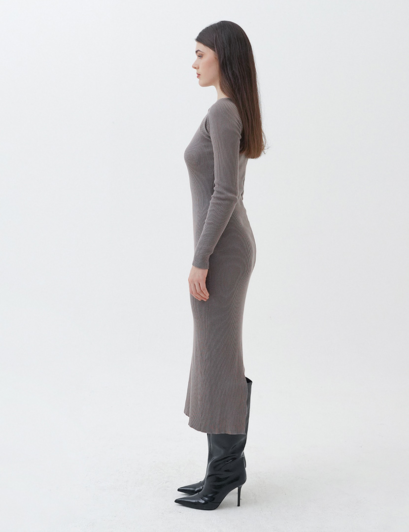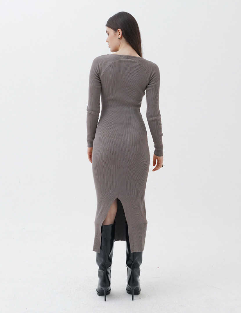 Knit Midi dress with long sleeves. Featured Long and fitted silhouette with slit at the back.