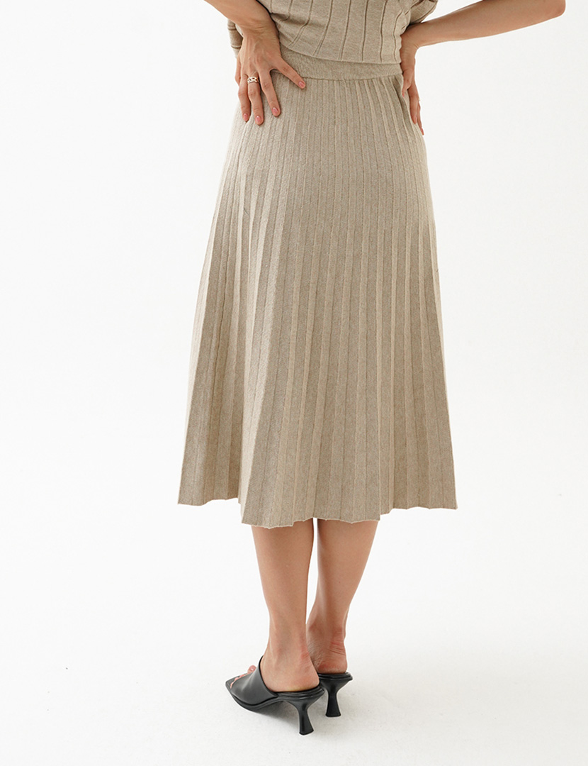 High-waist midi skirt with an elastic waistband. Pleated fabric.