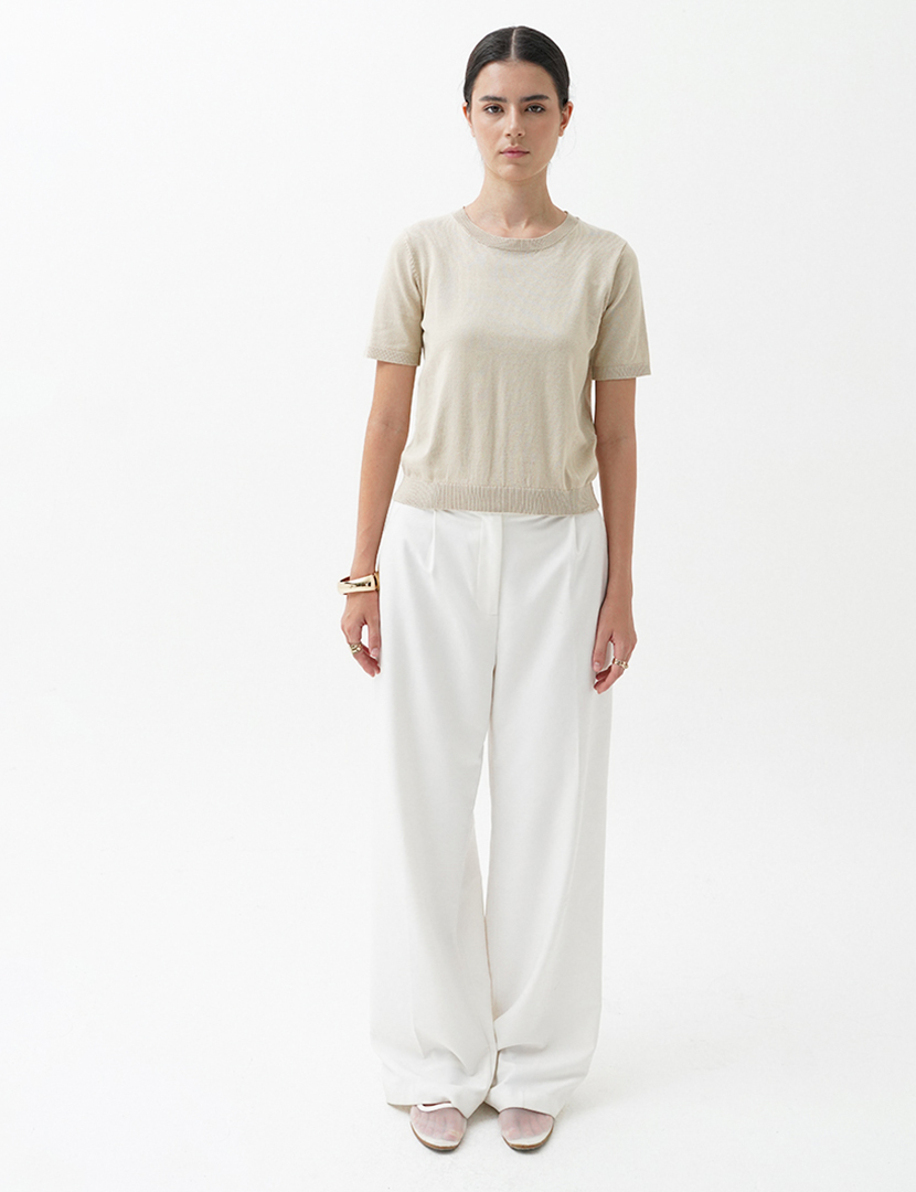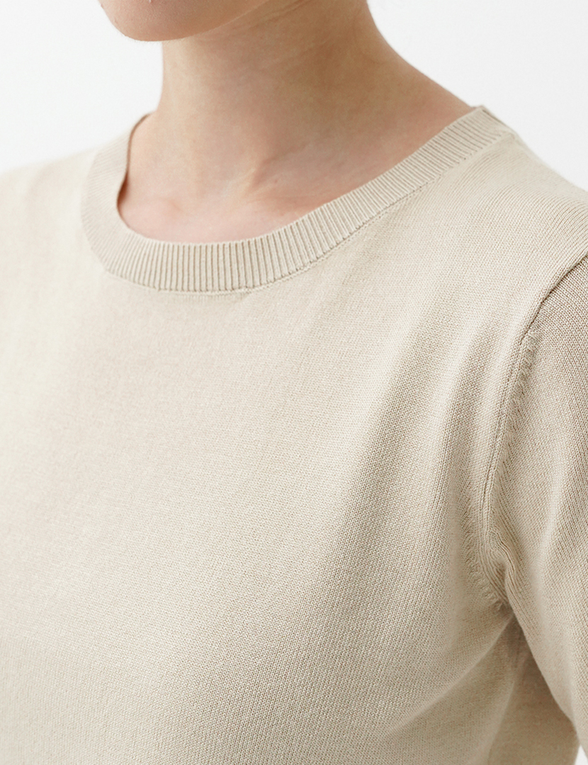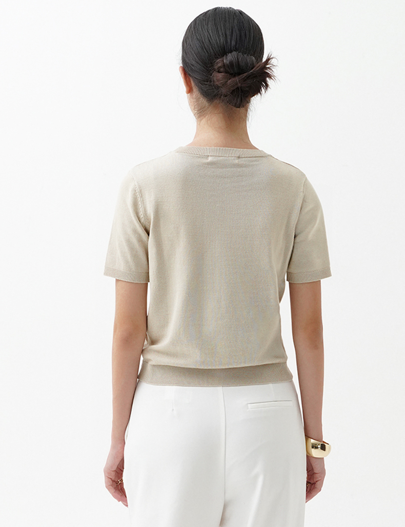Knit Short Sleeve Basic Top Cream
