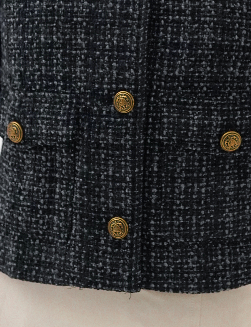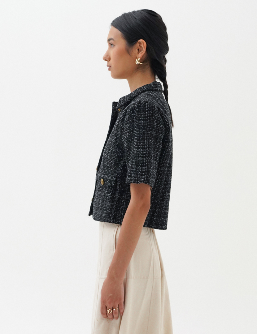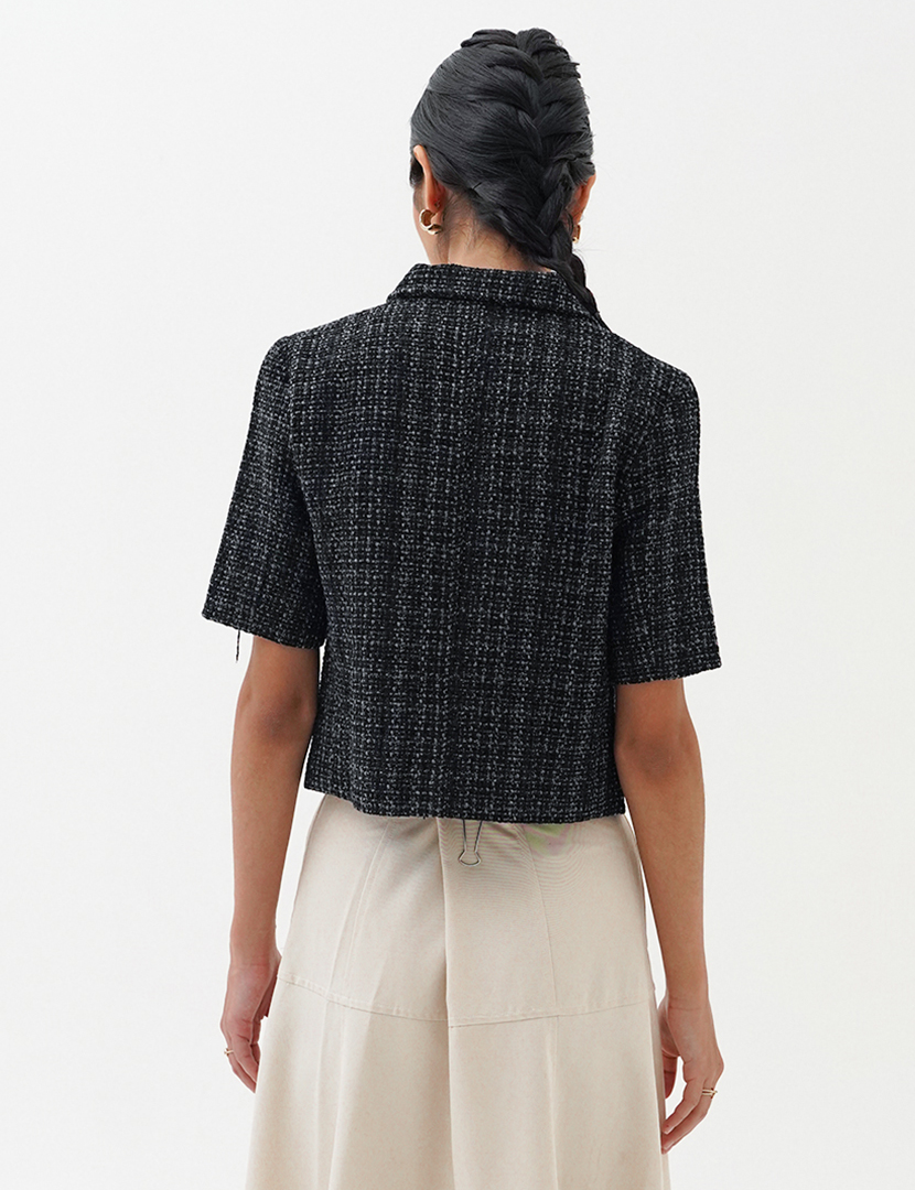 La Naturecree Cropped Cotton Blend Tweed Jacket Black