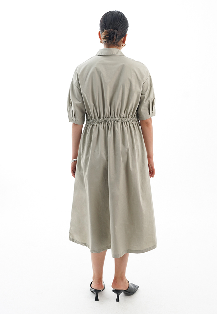 La Naturecree Midi Dress With Belted Waist Sage