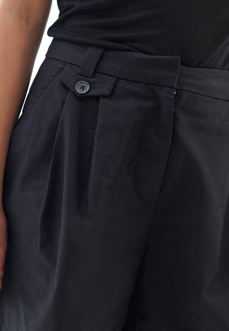 High waisted tailored wide leg short with coin pocket detail in a Herringbone linen.