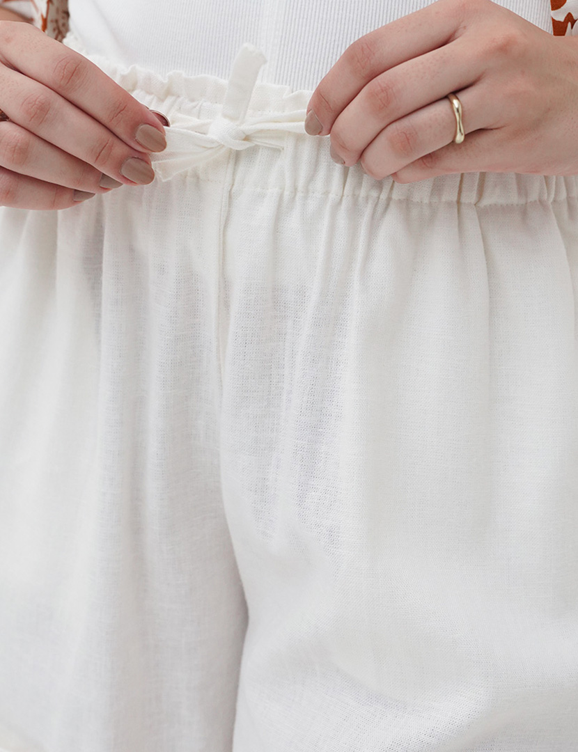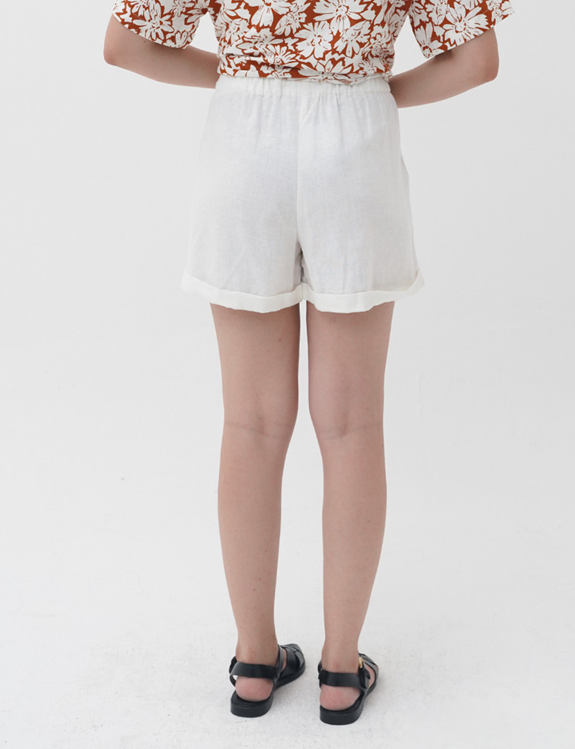 Linen Roll Up Short Pants Cream
