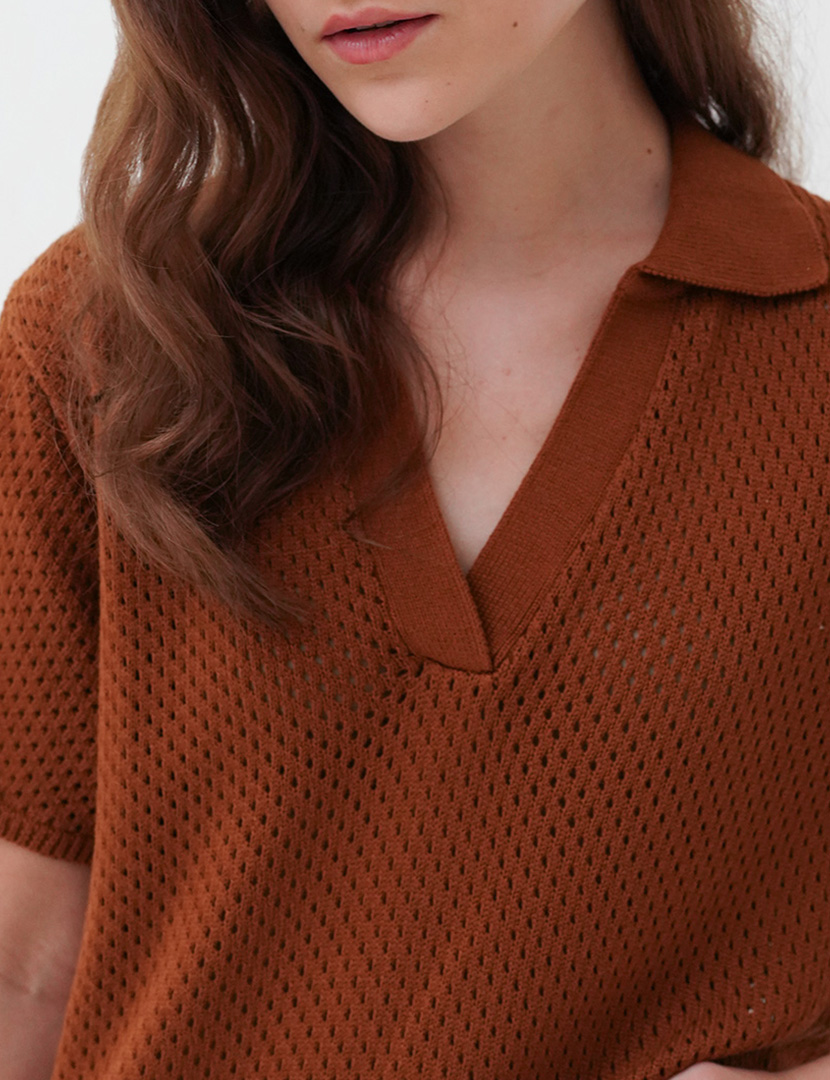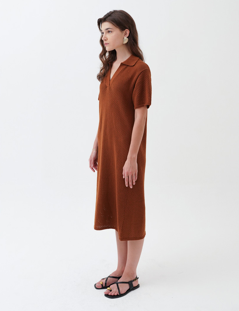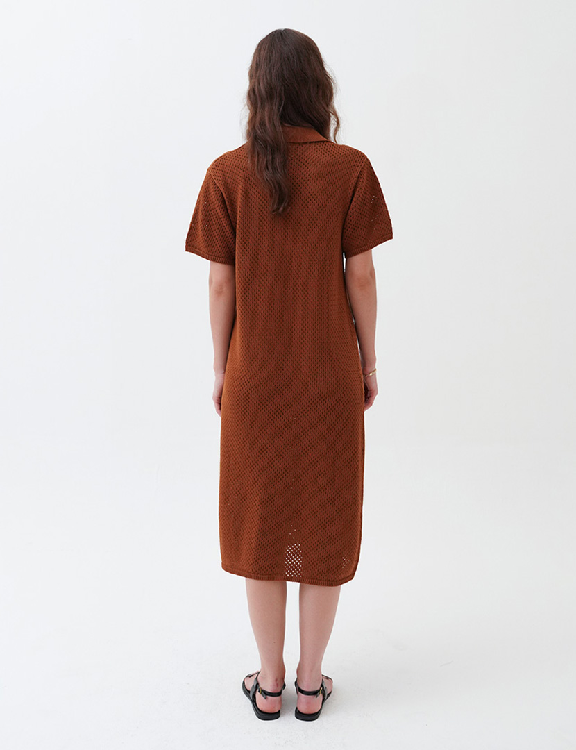 Collared dress with a v-neckline and short sleeves, midi Length.