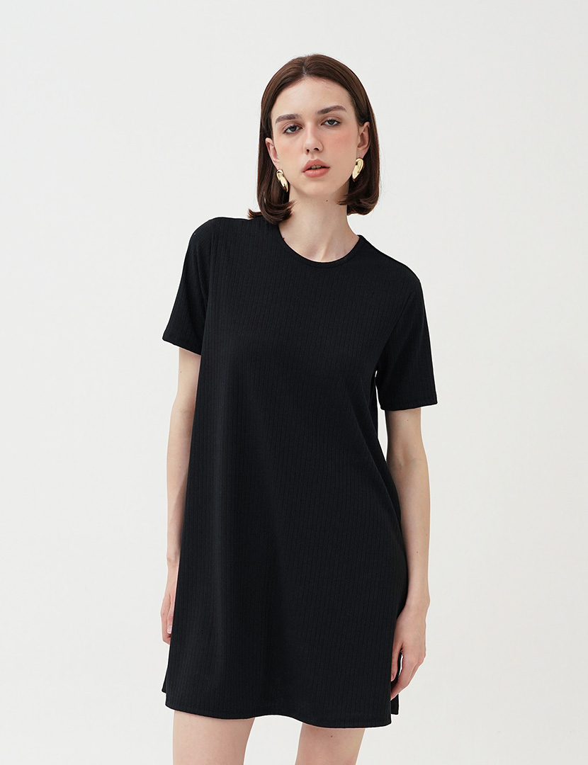 Oversize midi dress made of cotton. Featuring a round neck and short sleeves.