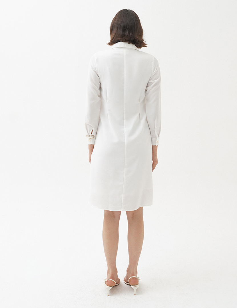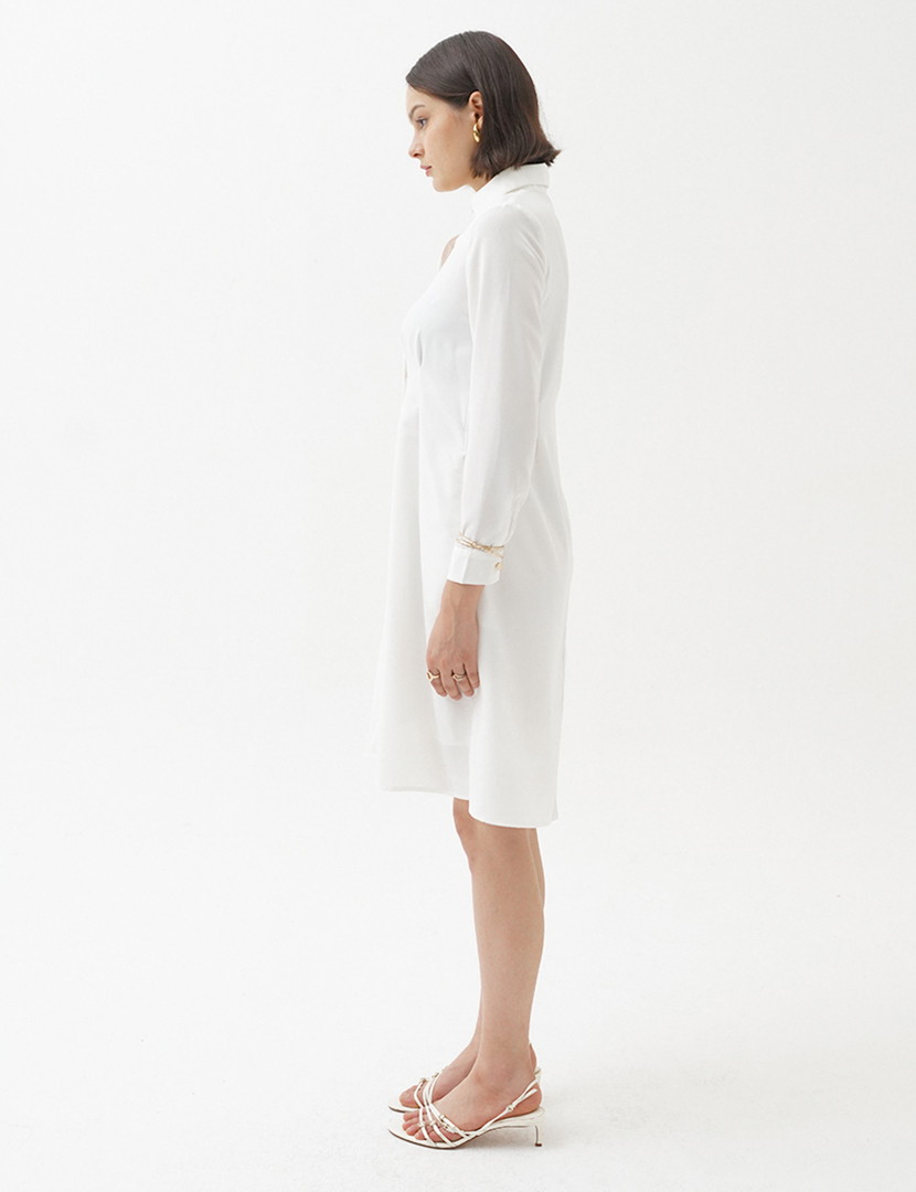Long sleeve dress basic with v-neckline, front button fastening and button on hand.