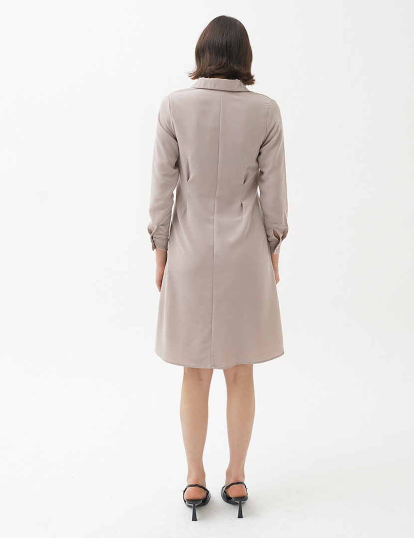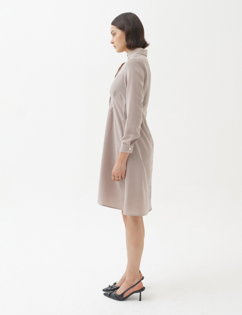 Long sleeve dress basic with v-neckline, front button fastening and button on hand.