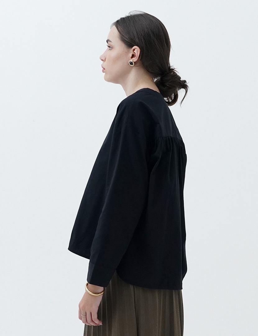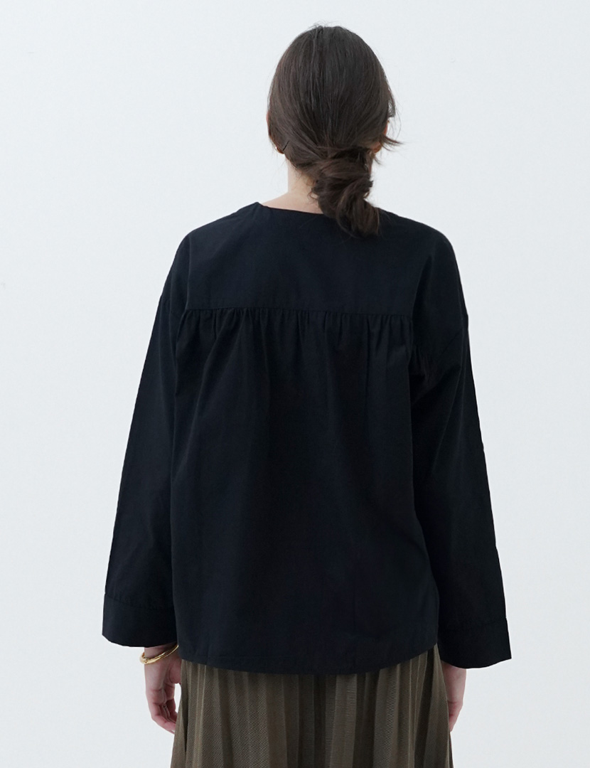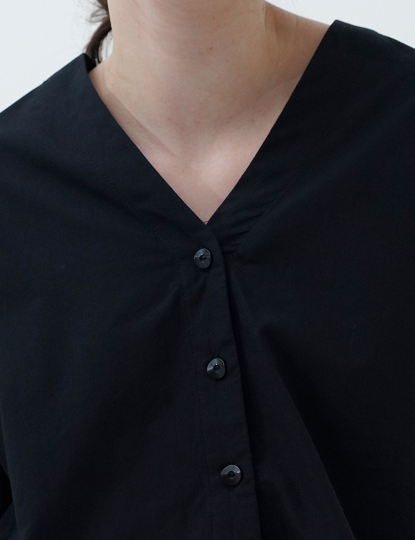 Blouse with a v-collar and long sleeves, button-up front.