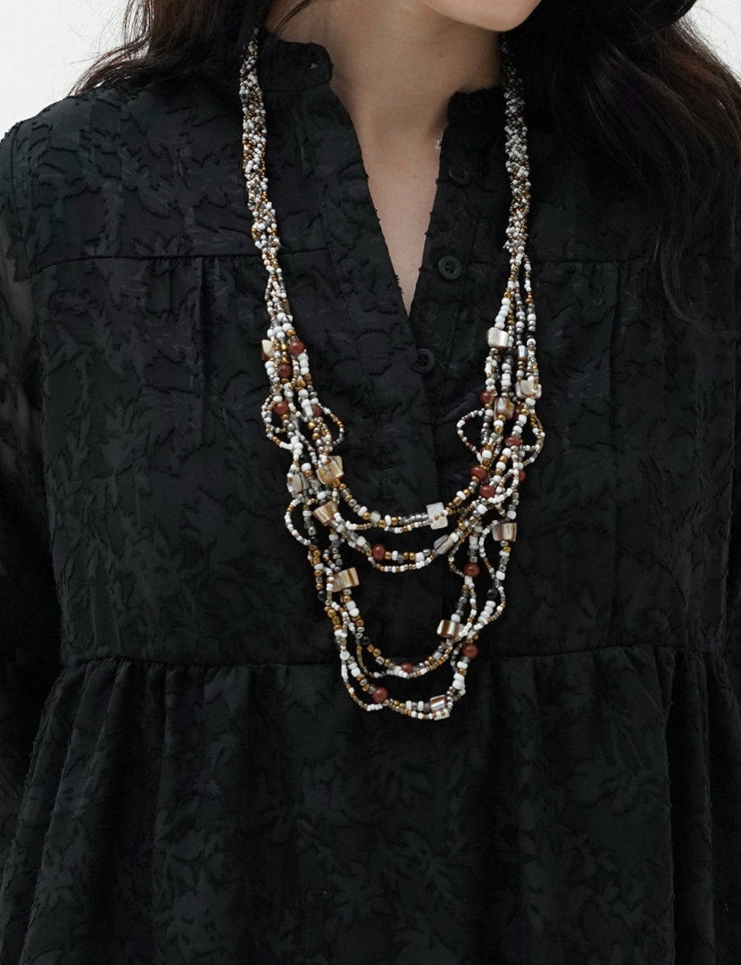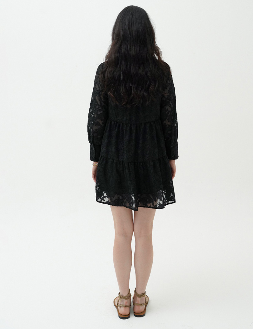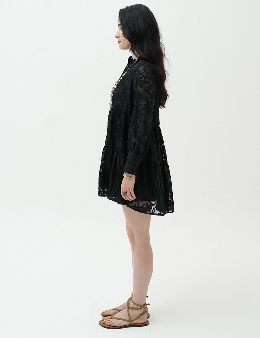 Mini Oversized Dress combined with long puffy sleeve. Lace Fabric and Layered design featuring front button for the opening.