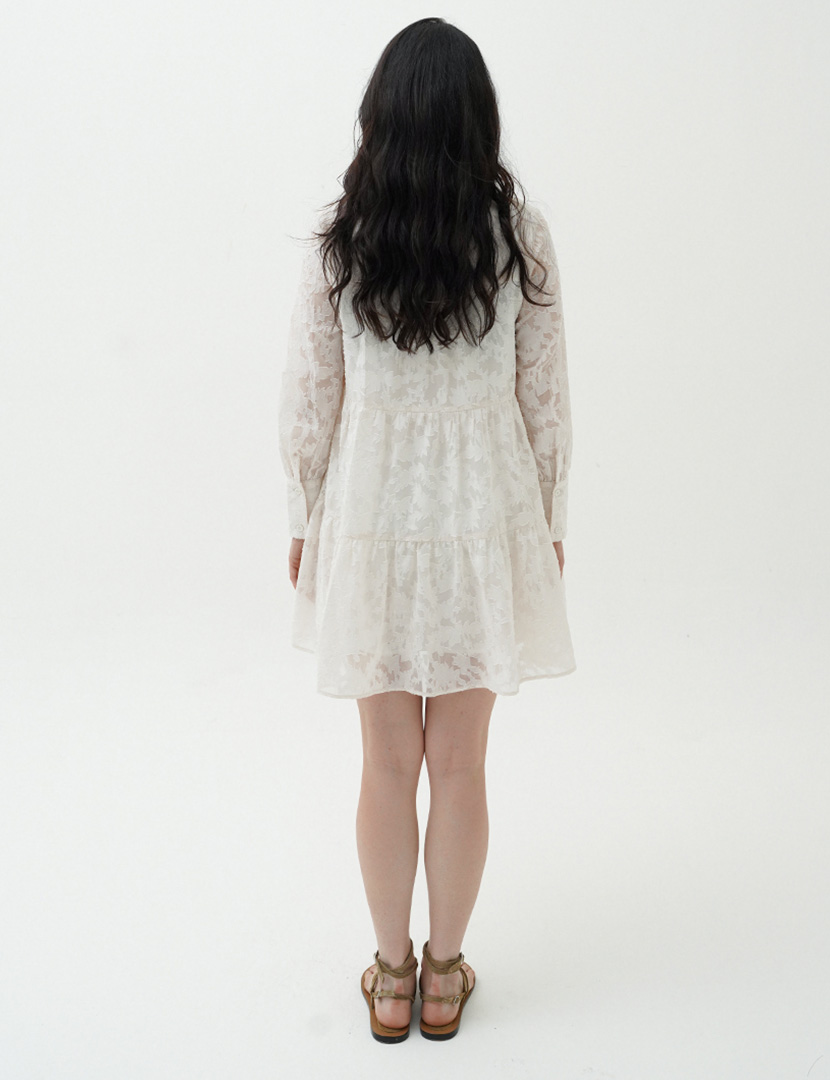 Mini Oversized Dress combined with long puffy sleeve. Lace Fabric and Layered design featuring front button for the opening.