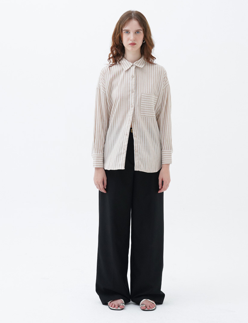 Stripes shirt with a collar and pocket, long sleeves and a button-up front.