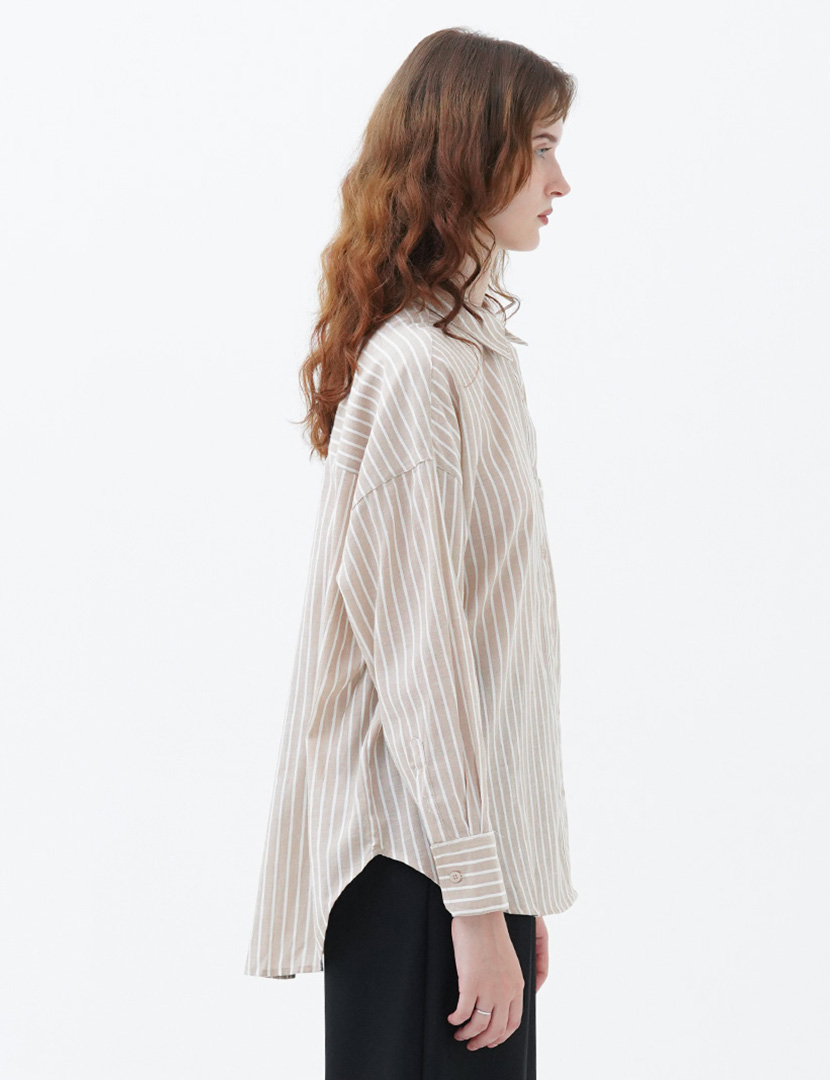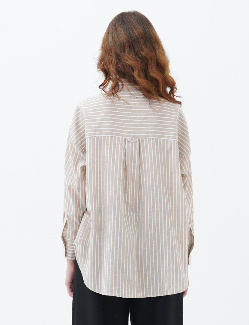 Cotton Striped Shirt Khaki