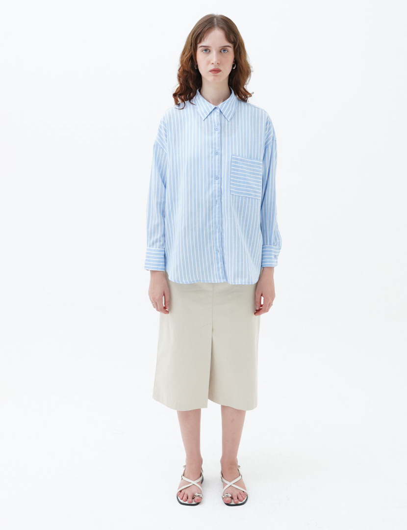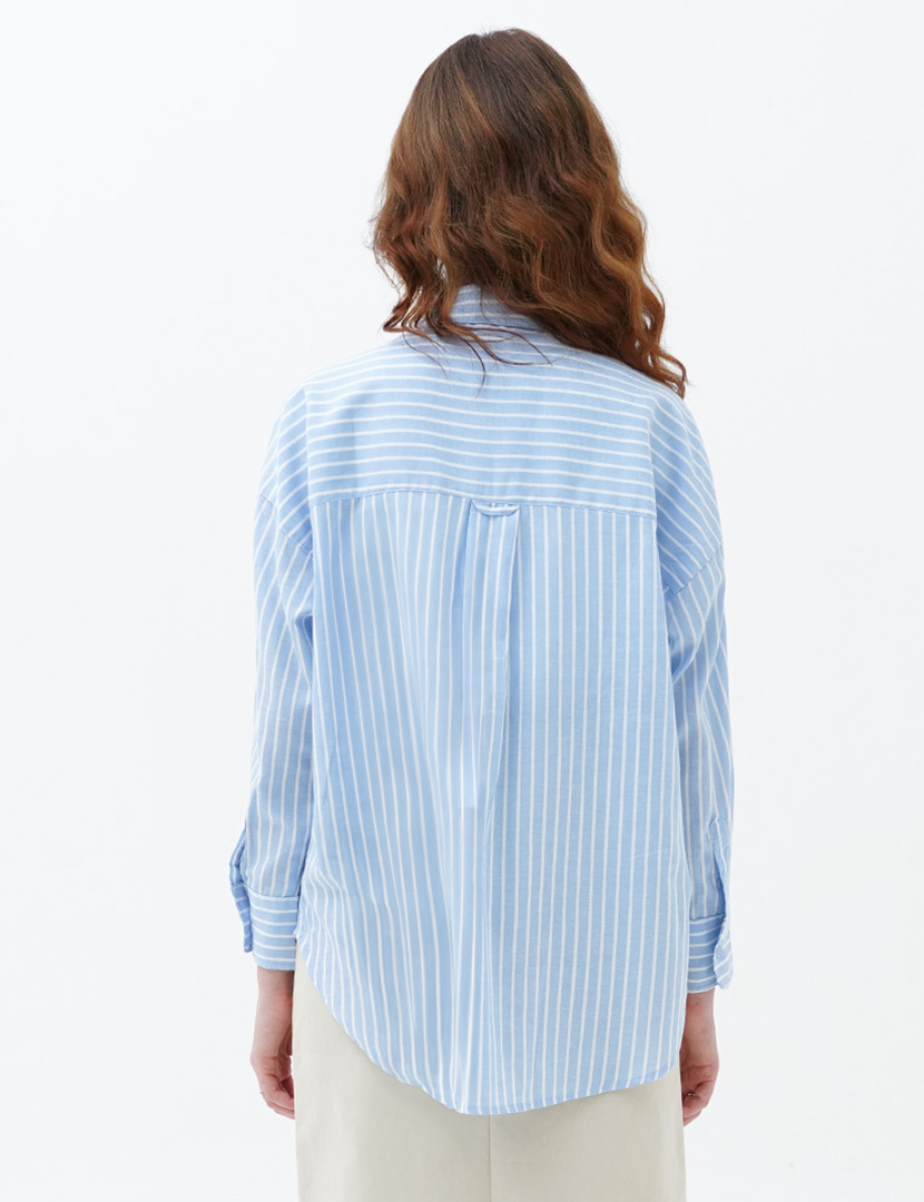 Stripes shirt with a collar and pocket, long sleeves and a button-up front.