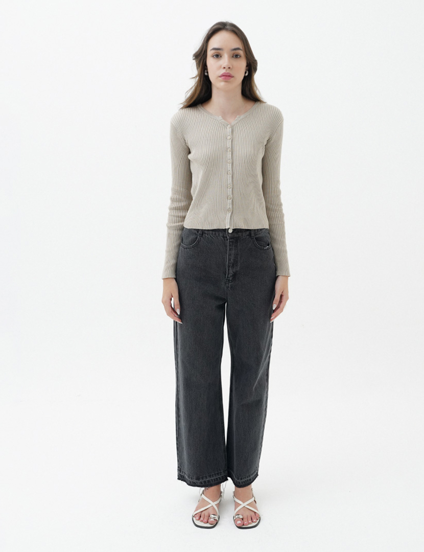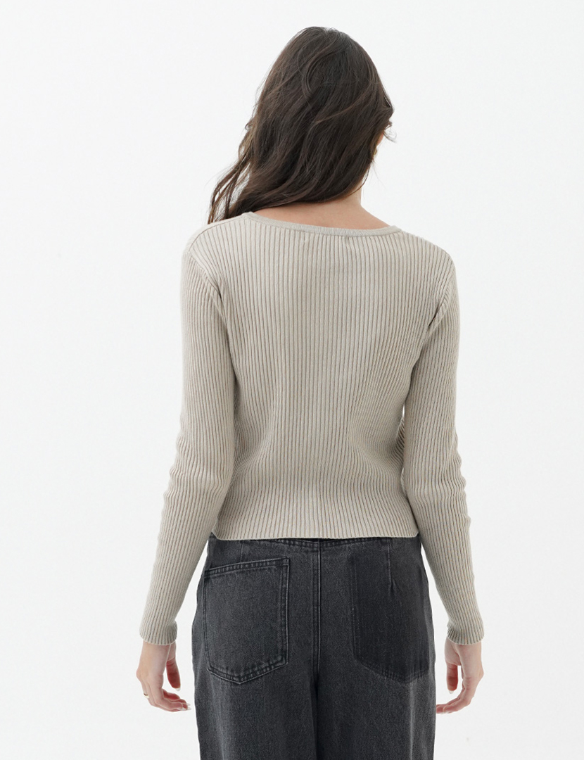 Fine sweatshirt with a round neck, long sleeves and front button fastening.