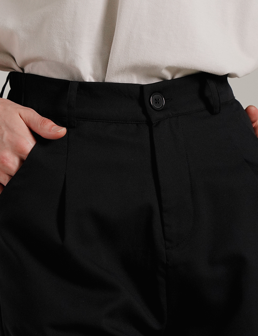 High-waist bermuda shorts made of cotton, side pockets and false welt back pockets, darted detail. Front zip fly, inside button and metal hook.