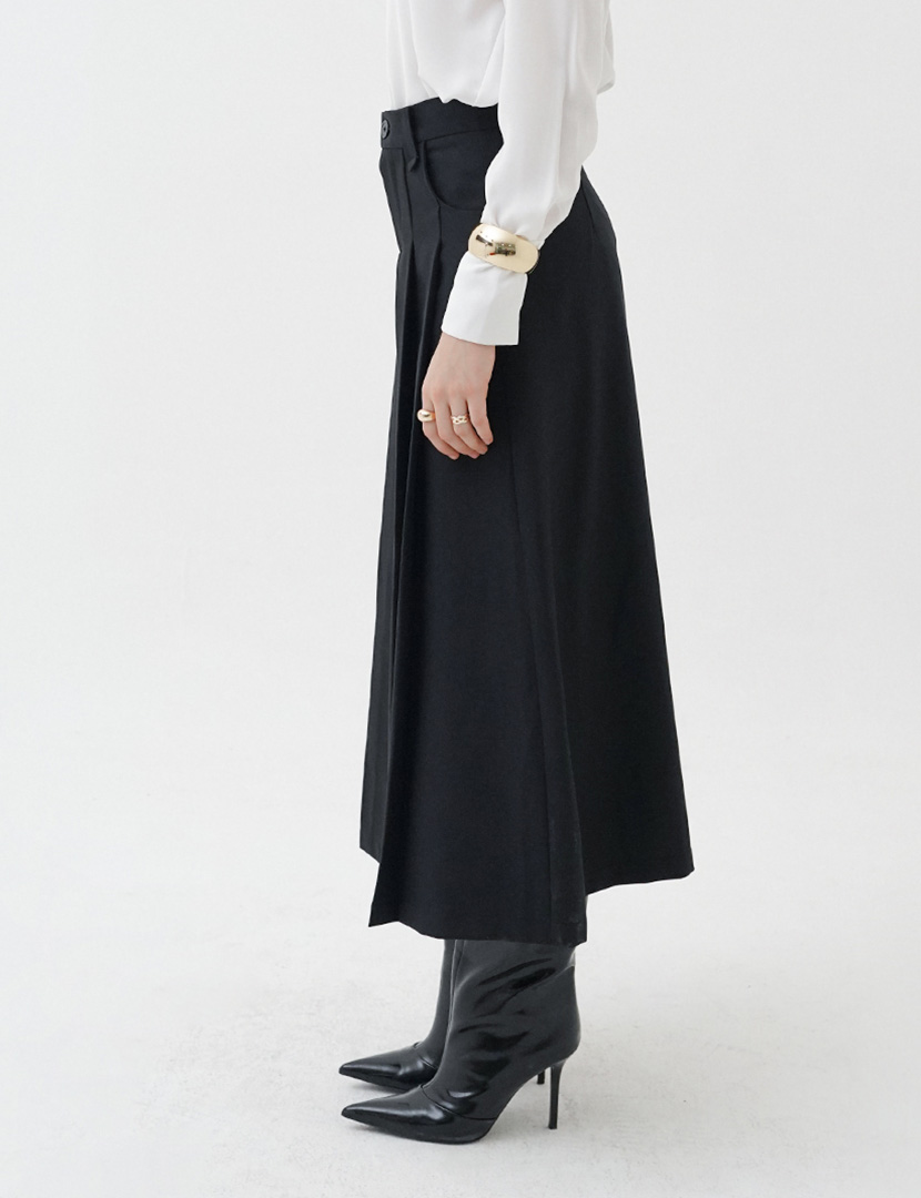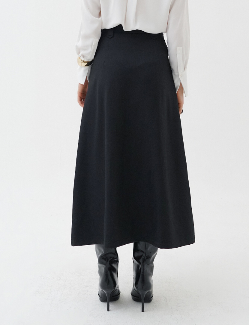 High-waisted A-line flowy midi skirt with button and american zip fastening