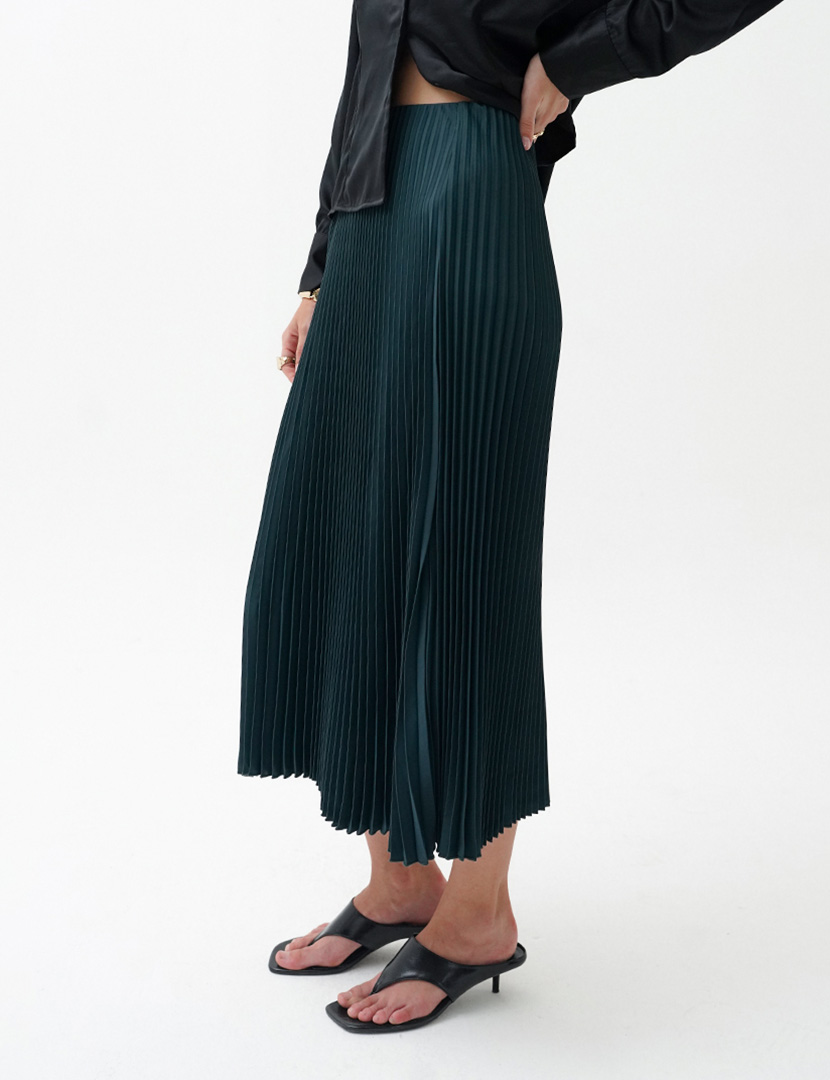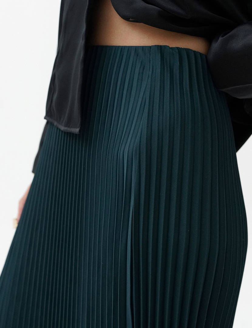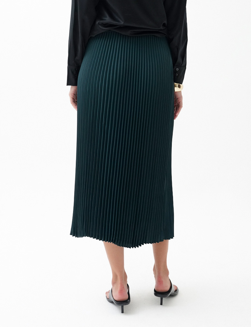 High waist midi skirt with elastic waist and striped pattern on the skirt.