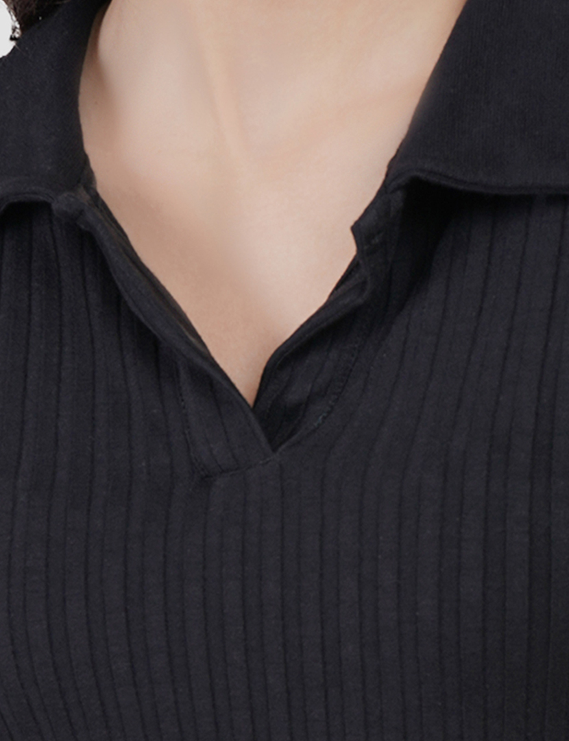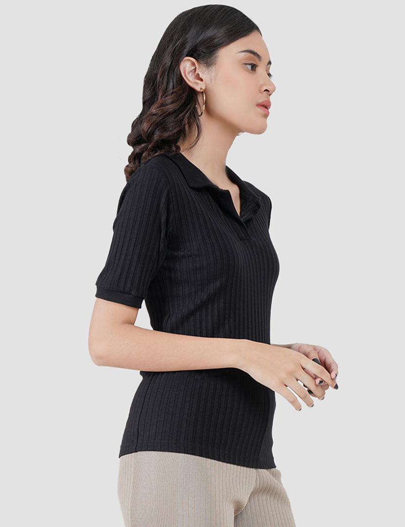Polo top with v-neck, plain t-shirt and short sleeves.