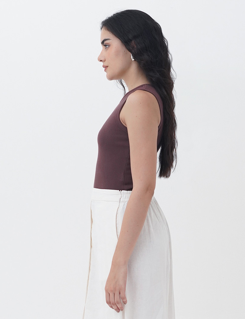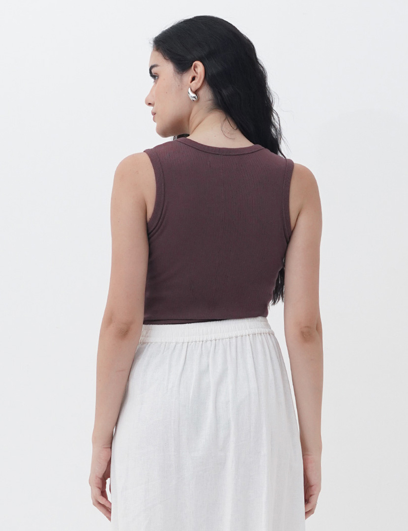 Tank top made of a cotton blend fabric. Featuring a round neckline, wide straps and ribbed trims.